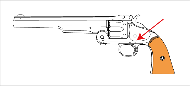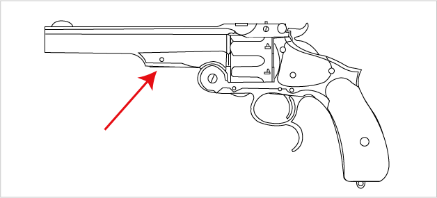 S&W No.3 拳銃のバレルロックがバレル側に付いていると二つ折りにする際に両手が必要なので、スコーフィールド少佐が