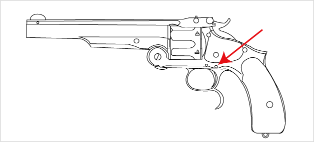 騎兵が馬上で片手で操作できるようにフレーム側にロック機構を設けたものです。また、その際にコルトSAA と同じく口径を45口径にも変更しました。