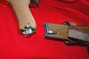 あったのかもしれないが、書籍やオークションで見かけるホルスターはみんな丸い革が別パーツで縫い付けられている。