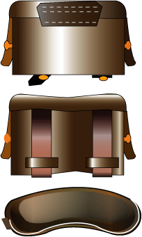 図のドイツの物も日本の前盒と同じでフタを内側から外側に開ける。内側は体に合うように 曲線で作られている。