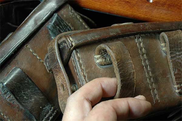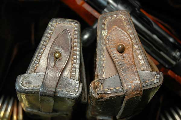 造りは頑丈に丁寧に製作されている。向かって右が初期の頃の物だと思う。弾の仕切りの革が多い分