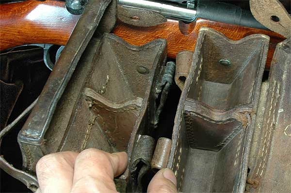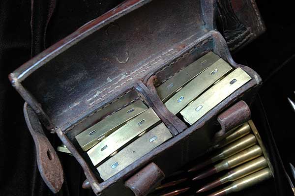 前盒には、このようにクリップつきの弾薬が30発収まる。7.7mmになっても弾薬盒はそのまま使用された。
