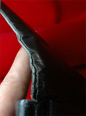 ベルト通しや前面スリット部分など関係が無いところまで全て4枚貼りの革が使用されている。