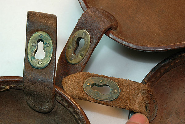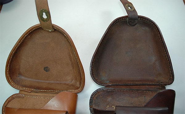 日本のオークションで入手した「タイプ3」。 この固体のフタ表面の革には何かオイルステインのようなものを塗った形跡がある。 また革表面は濡れた皮のような状態である。通常、旧軍の革製品は経年変化により テッカテカ状態なのだがこの固体は違う。どのような保存状態だったらこんな風になるのであろうか。
