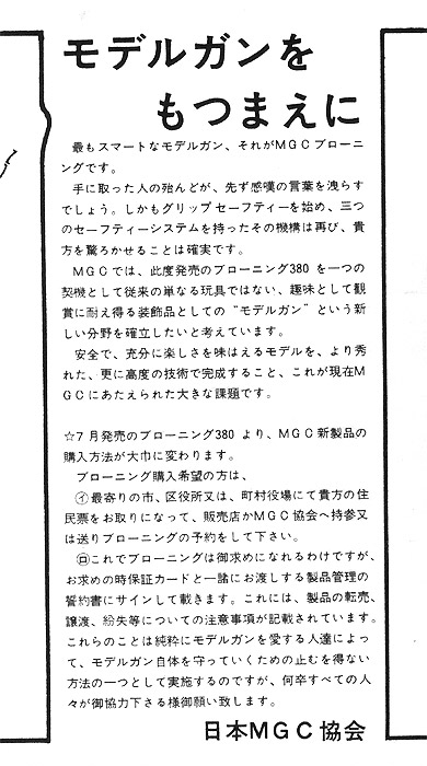 | 今も昔も変わらないモデルガン規制の厳しさが見られる。 住民票を持って買いに行くというのは驚きだ。 |