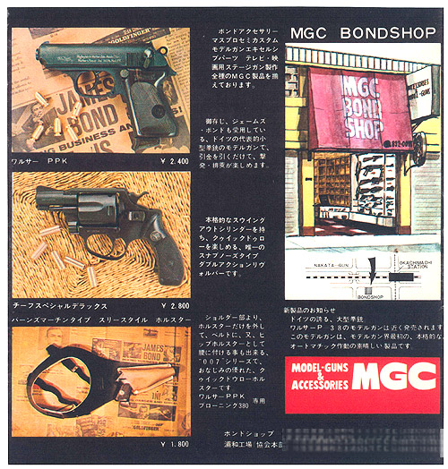 この頃のPPKは実物よりも1cm短い。タニオアクションでコピー品も多く出た。 むかし、コピー品を買って遊んでいたがすぐに壊れた。 のちに実寸サイズのナチマーク・グリップのPPK・タニオアクションが製品化された。 |