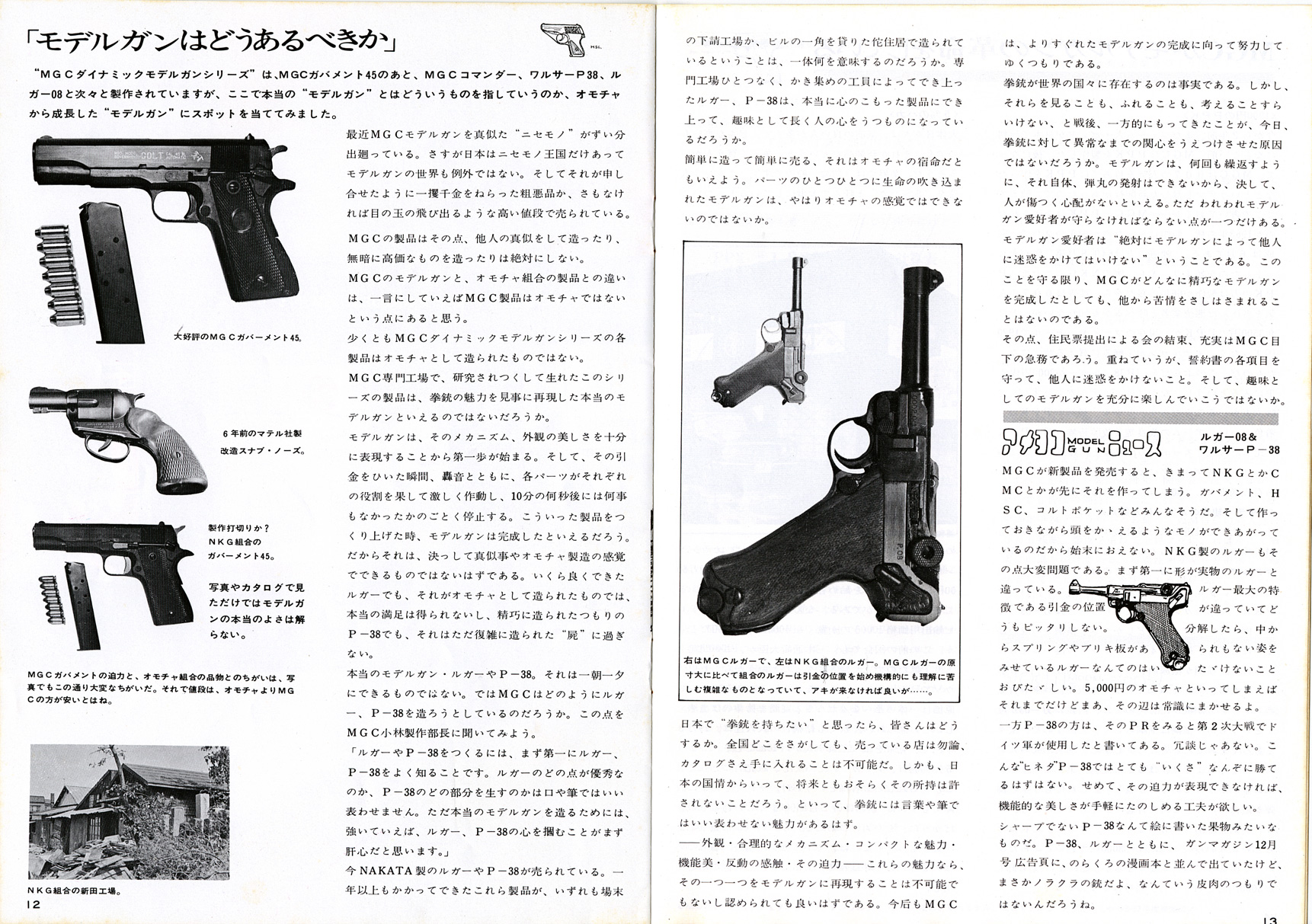 文中に出てくるモデルガンは、中田のワルサーP38、ルガーP08、コクサイ(INT)のコルトポケットなどです。