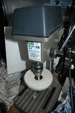 バフとは、クルマのボディーの仕上げなどに使う布のことをいう。私はミニボール盤に取り付けて白棒(研磨剤)を使用している。
