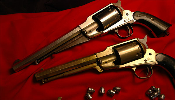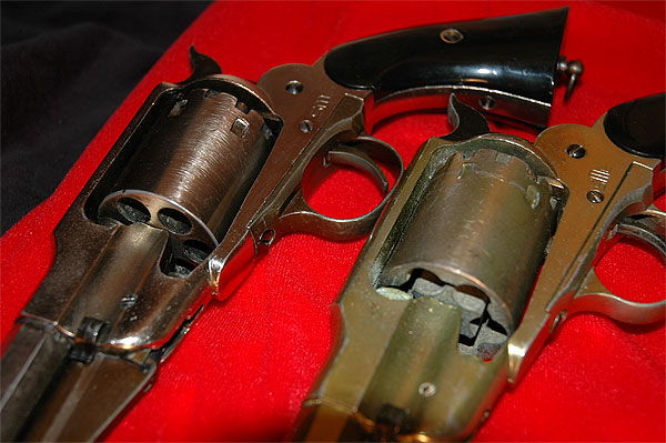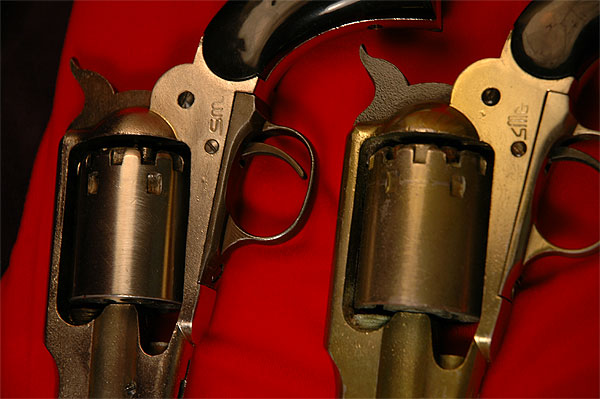 ローディングレバーの形状も若干違う。ネービーモデルの方が先に出た。1860年。 アーミーは1862年登場。ネービーやアーミーというのは軍に採用されたわけではなく、当時のアメリカでは 36口径の銃をネービー、44口径の銃をアーミーと呼んでいた。