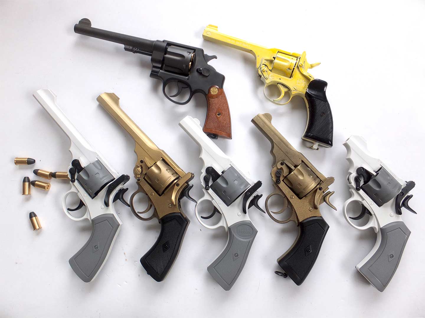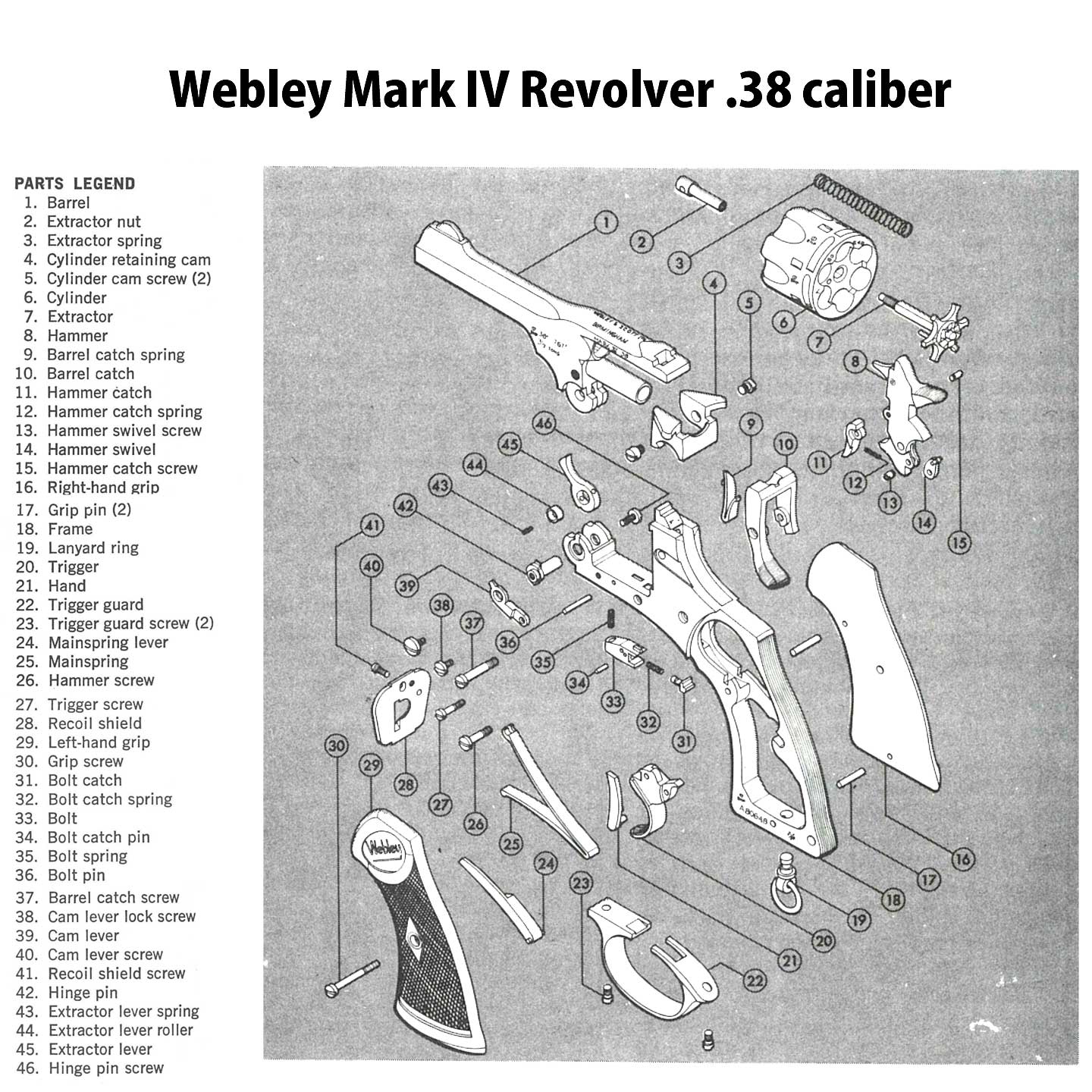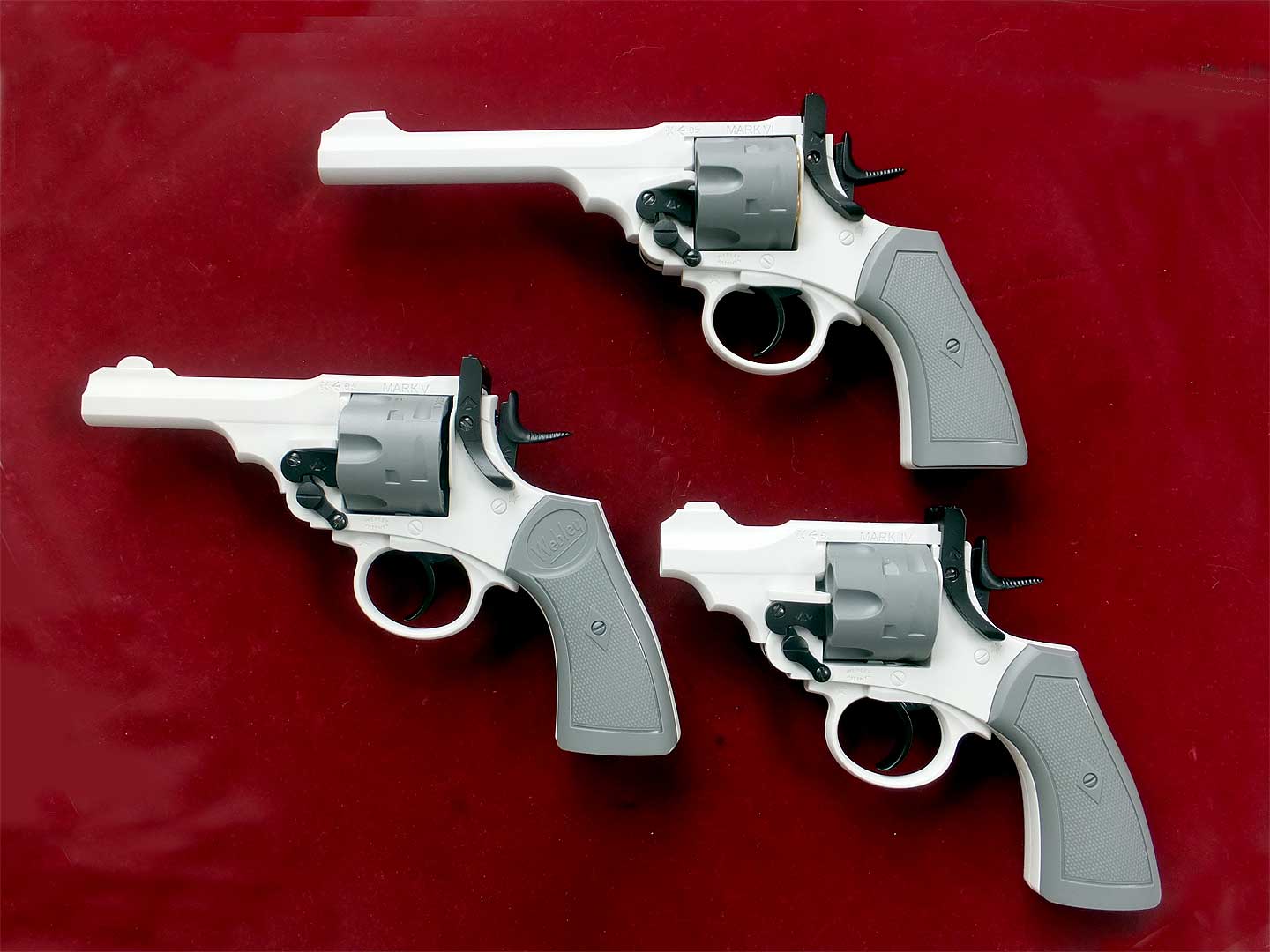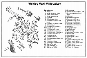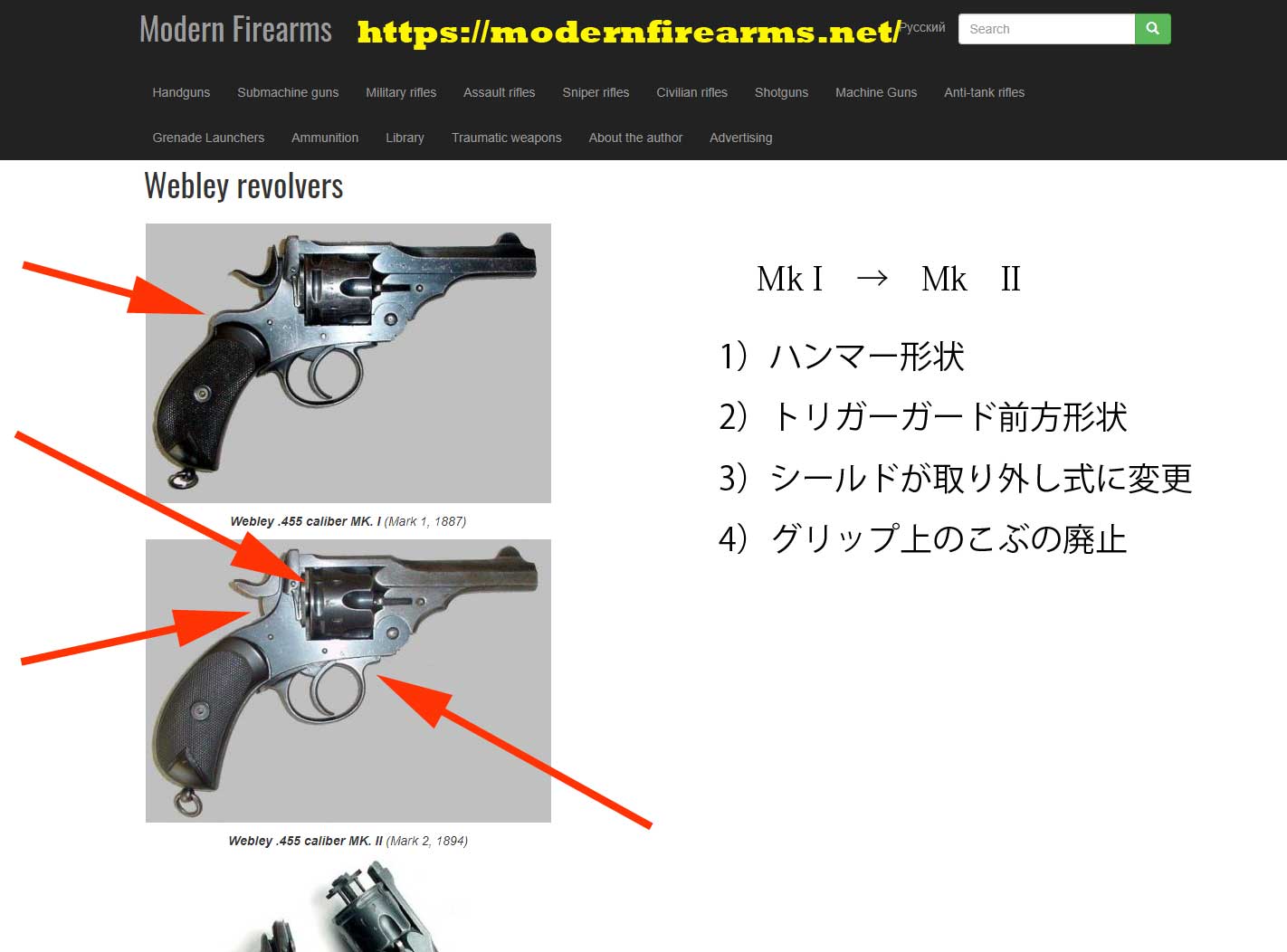 イギリス軍が採用したウェブリーモデル一覧。このほかにフレームとバレルのバージョンが違うモデルが 多く存在し、それらは *(スター)を付加して呼ばれます。現在多くのページではウェブリーと言えば、ほぼマーク6です。
