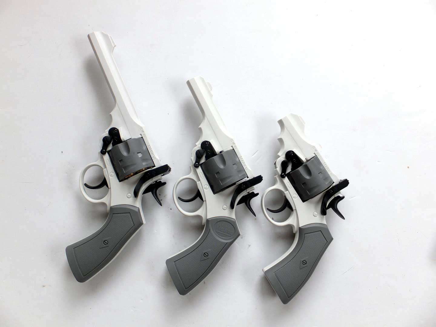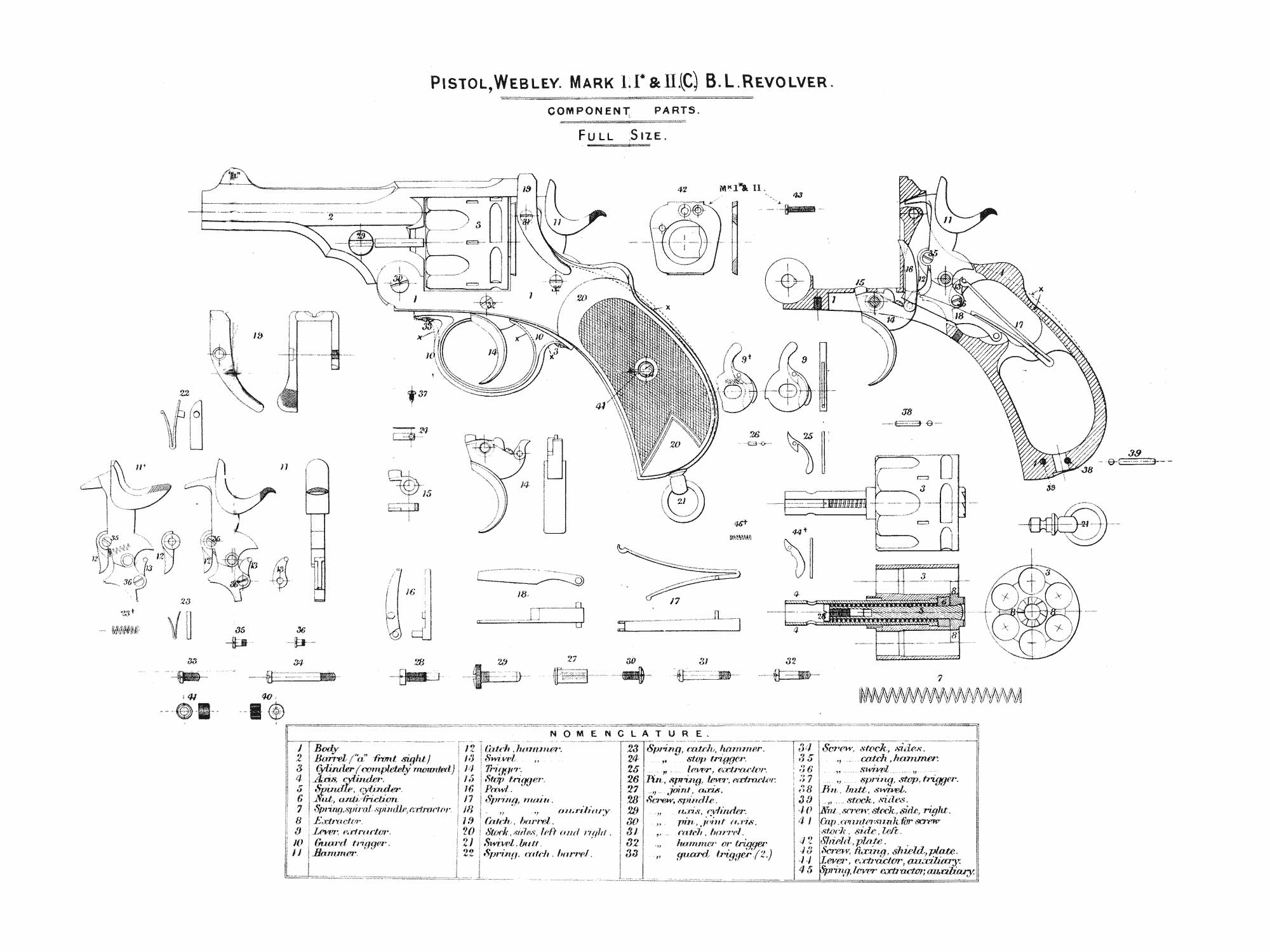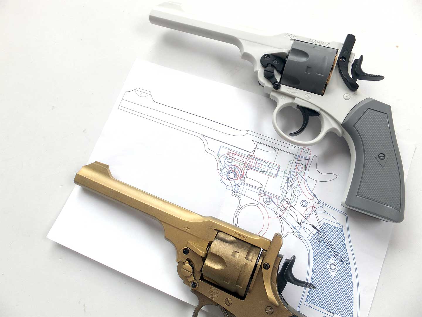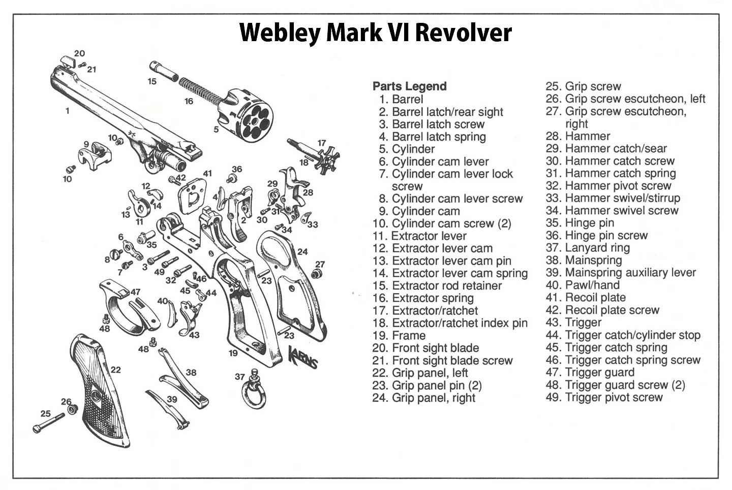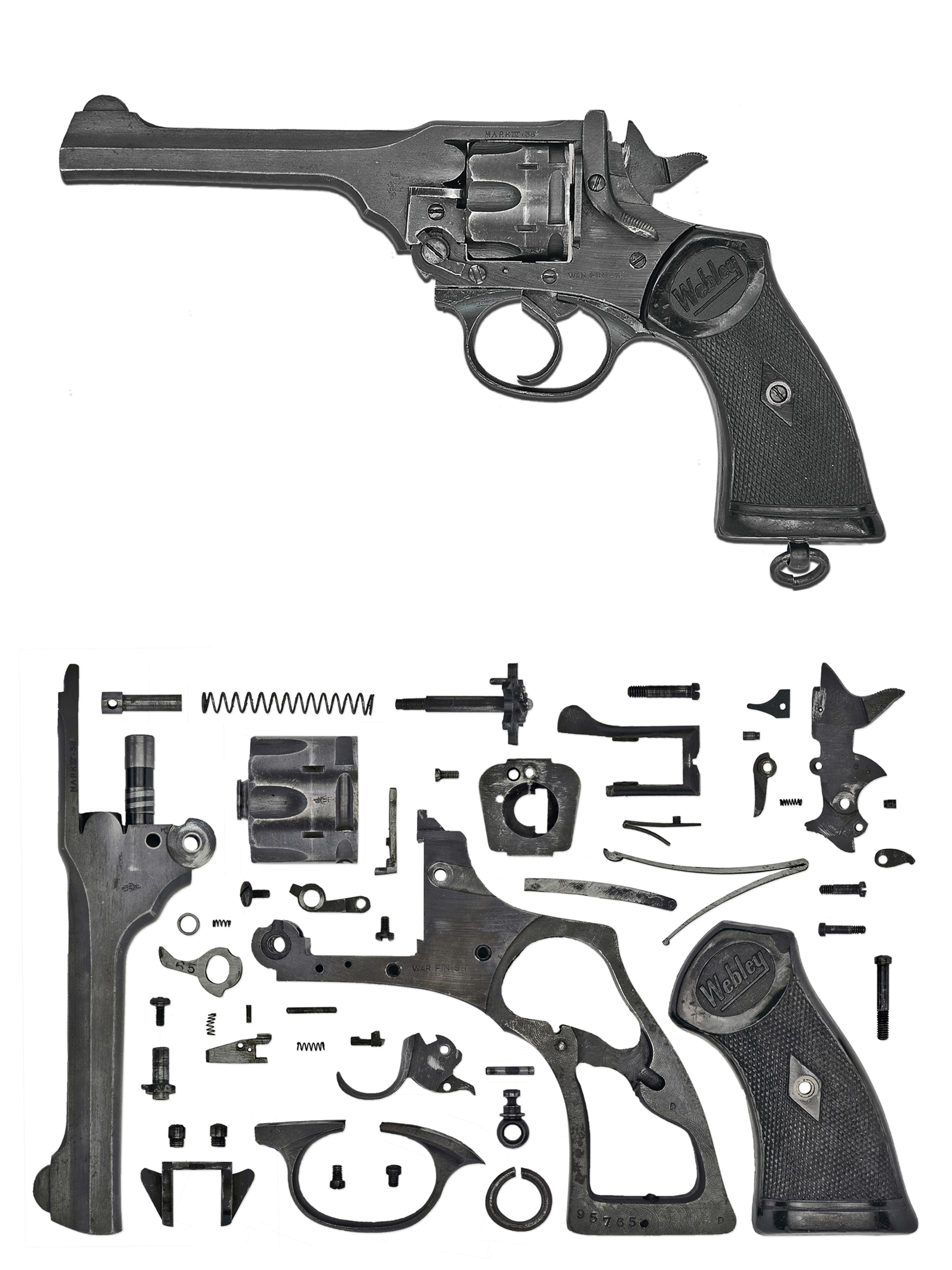 イギリス軍が採用したウェブリーモデル一覧。このほかにフレームとバレルのバージョンが違うモデルが 多く存在し、それらは *(スター)を付加して呼ばれます。現在多くのページではウェブリーと言えば、ほぼマーク6です。
