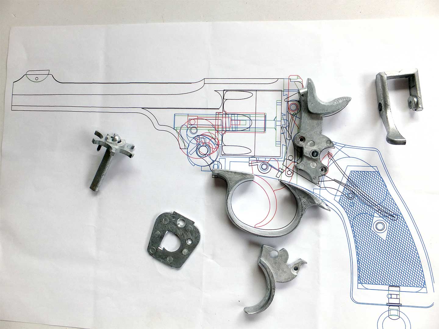 写真の図面は、CAW の社長宅をファンクラブの面々と訪れた時にお土産でもらったものですが、ご覧のように エアコキもしっかりと大きさは再現されています。