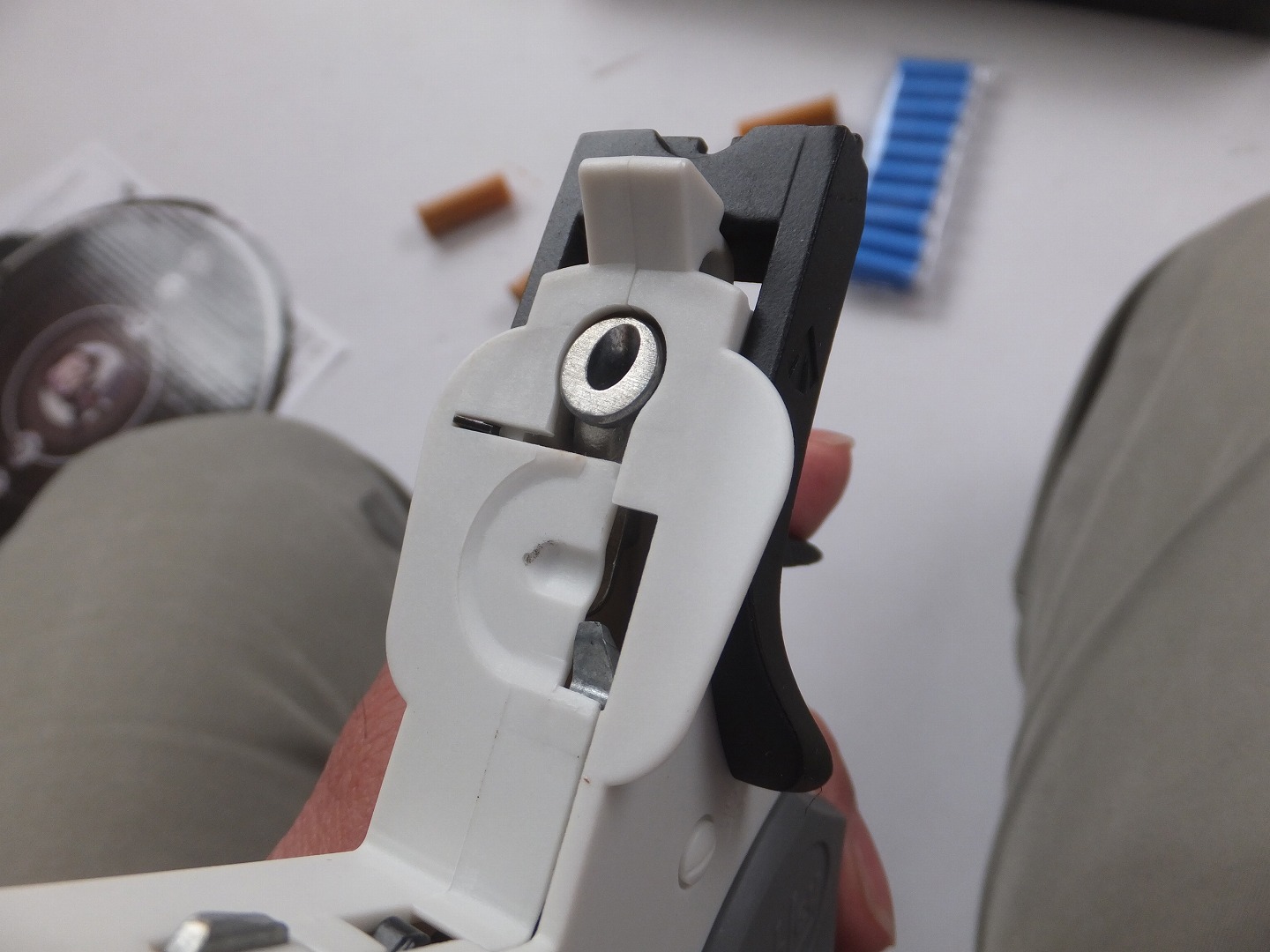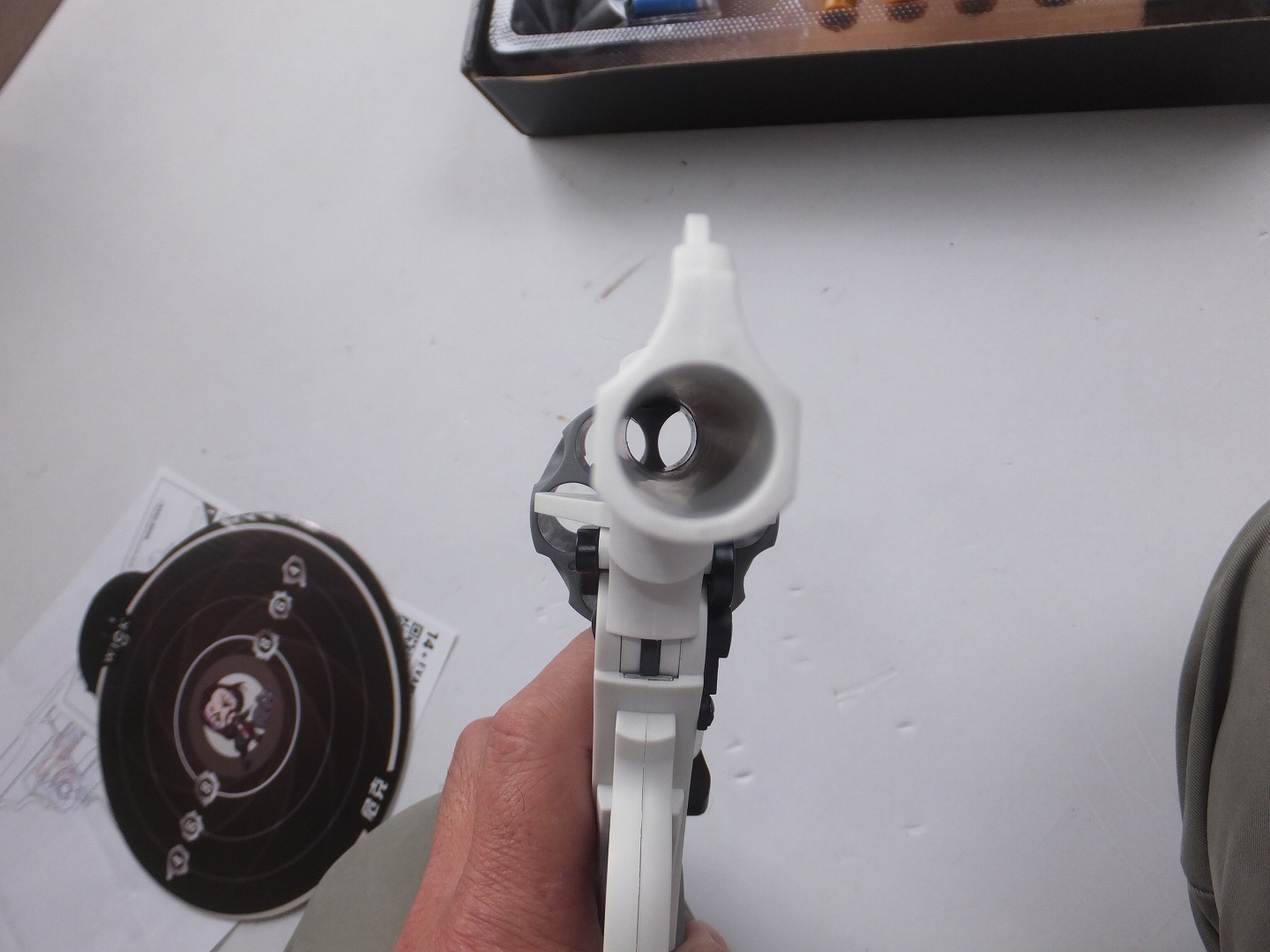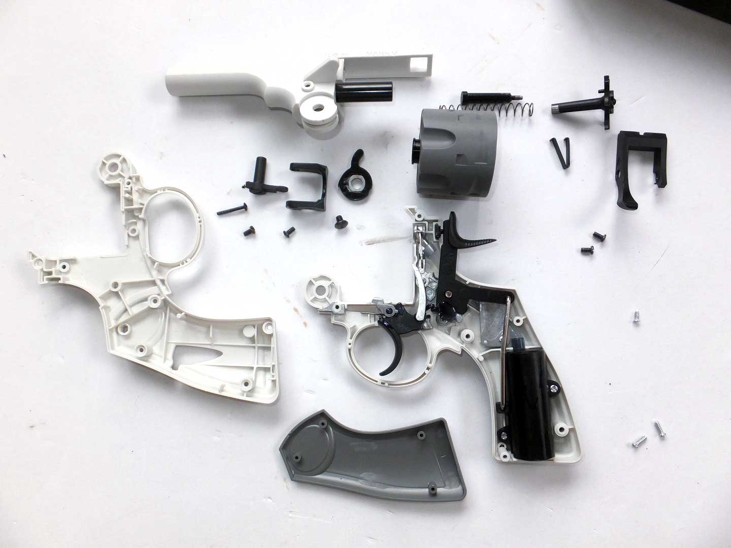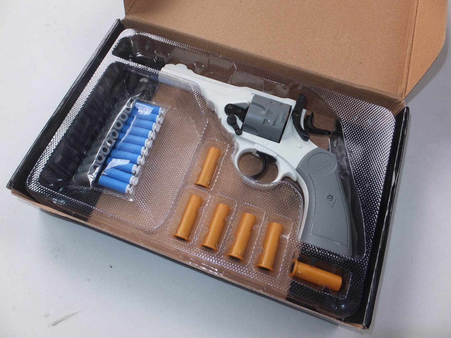 シリンダーにブッシュを入れてスポンジの弾を飛ばすようです。ラッチの板バネがすぐに折れるという書き込みもありましたが 私の物は、まだ大丈夫のようです。
