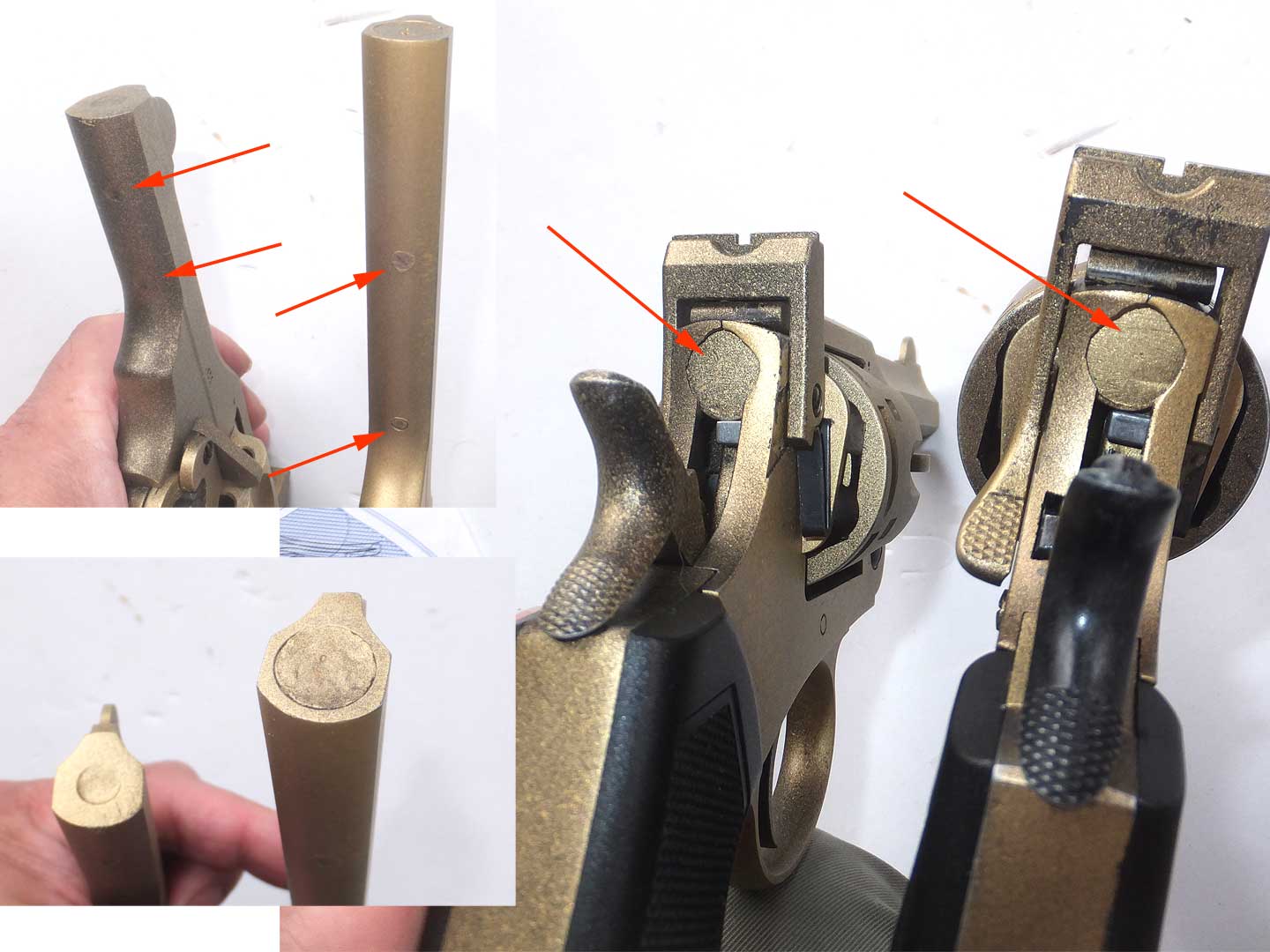 ガスガンは、バルブを除去しバレルはフォーシングコーンまでびっちり埋められています。