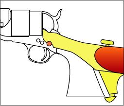 しかしこれでもちゃんと遊べるから面白い。シリンダストップは、トリガーが兼ねている。