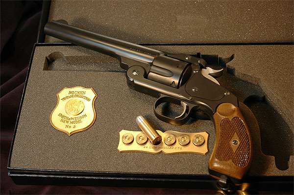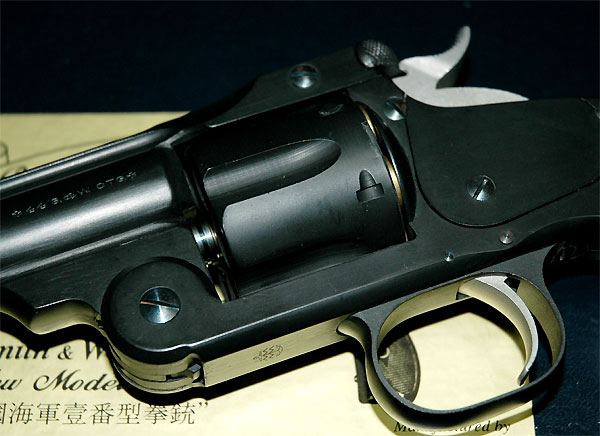海軍では壱番型拳銃としてその後20年ほど輸入しながら使用された。 ここに紹介する物は六研製プラキャストのモデルガンでS&W モデル3シリーズ後期の ニューモデル3で最も多く輸入されたタイプ(1万丁)を再現してある。 表題の字体について六研の説明書には「壱番型」と書いてあるが、1910年(明治43年)の図面には 「一番形」と記述してある。弾薬箱の写真を見てもそのようだ。 本当は「一番形」であったのかもしれない。