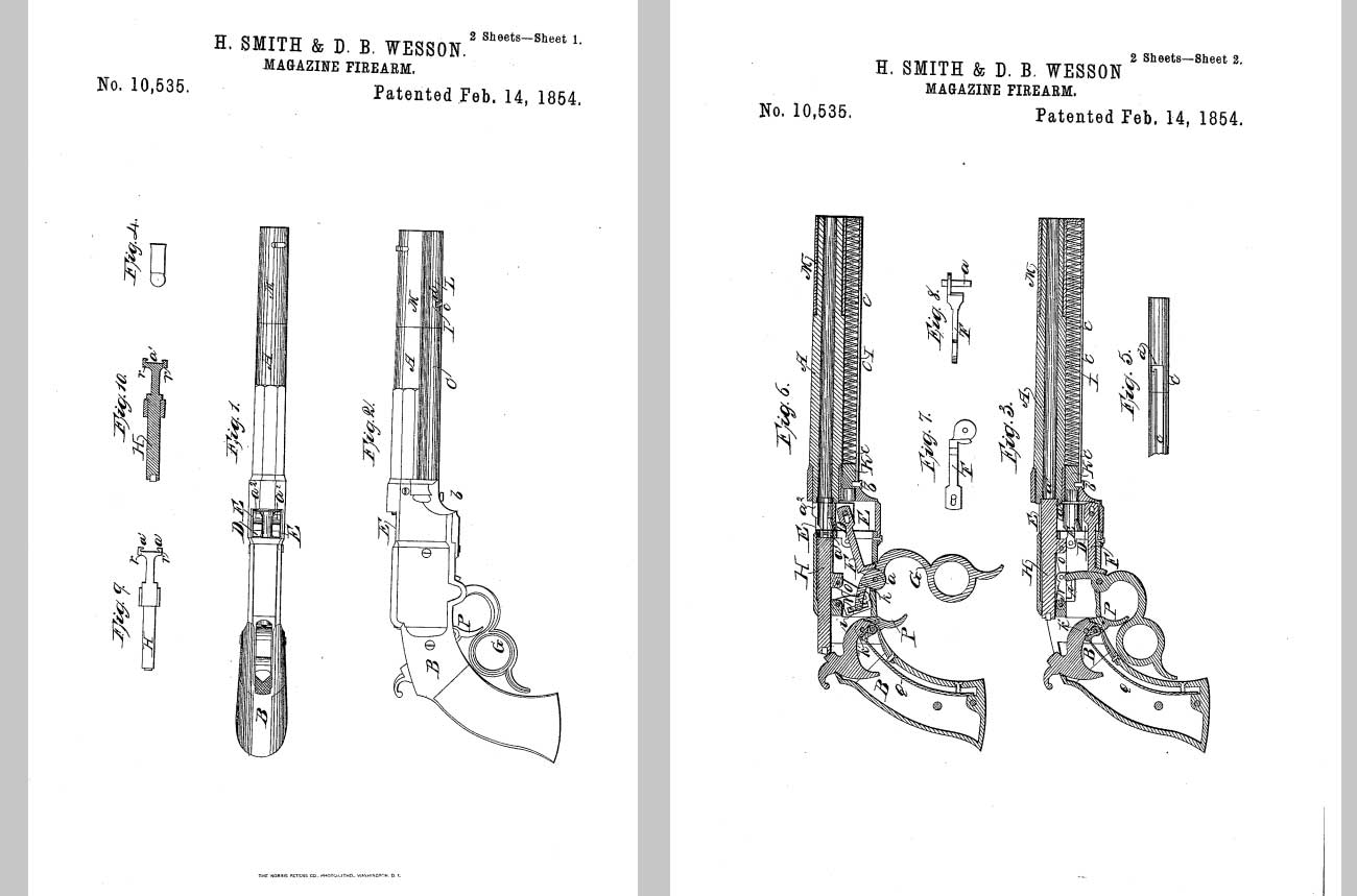 ウエッソンさんは、お兄さんがかつて作ったリボルバーをサミュエル・コルト氏に裁判で製造中止に追い込まれたので パテントには注意を払い、コルトの特許が切れてから売り出そうとしていた新型拳銃ですが、かつてコルトにいた ホワイトさんが貫通シリンダーの特許を持っている事が分かり、彼にパテント使用料を払うことで販売にこぎつけました。 そうして盟友スミスさんと2度目のS&W 社を立ち上げ、歴史に残る一歩を歩み始めます。いっぽうコルト氏は、この銃が世間に認められているころ病気で亡くなっています。まさに歴史の一ページがめくられました。 コルトのページがいったん終わり、新たにS&W のページが始まりました。
