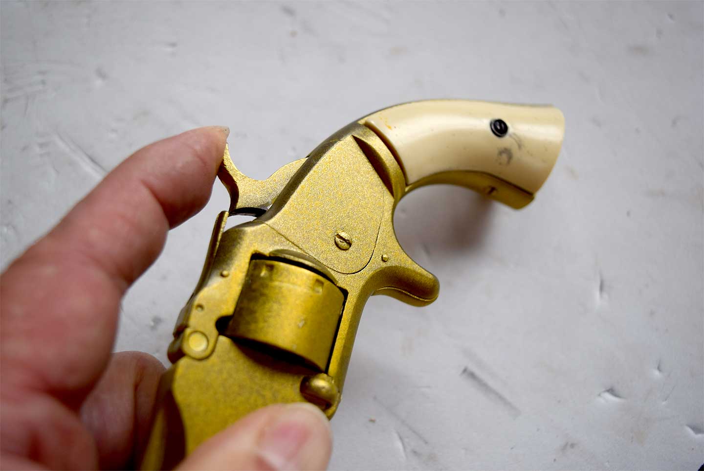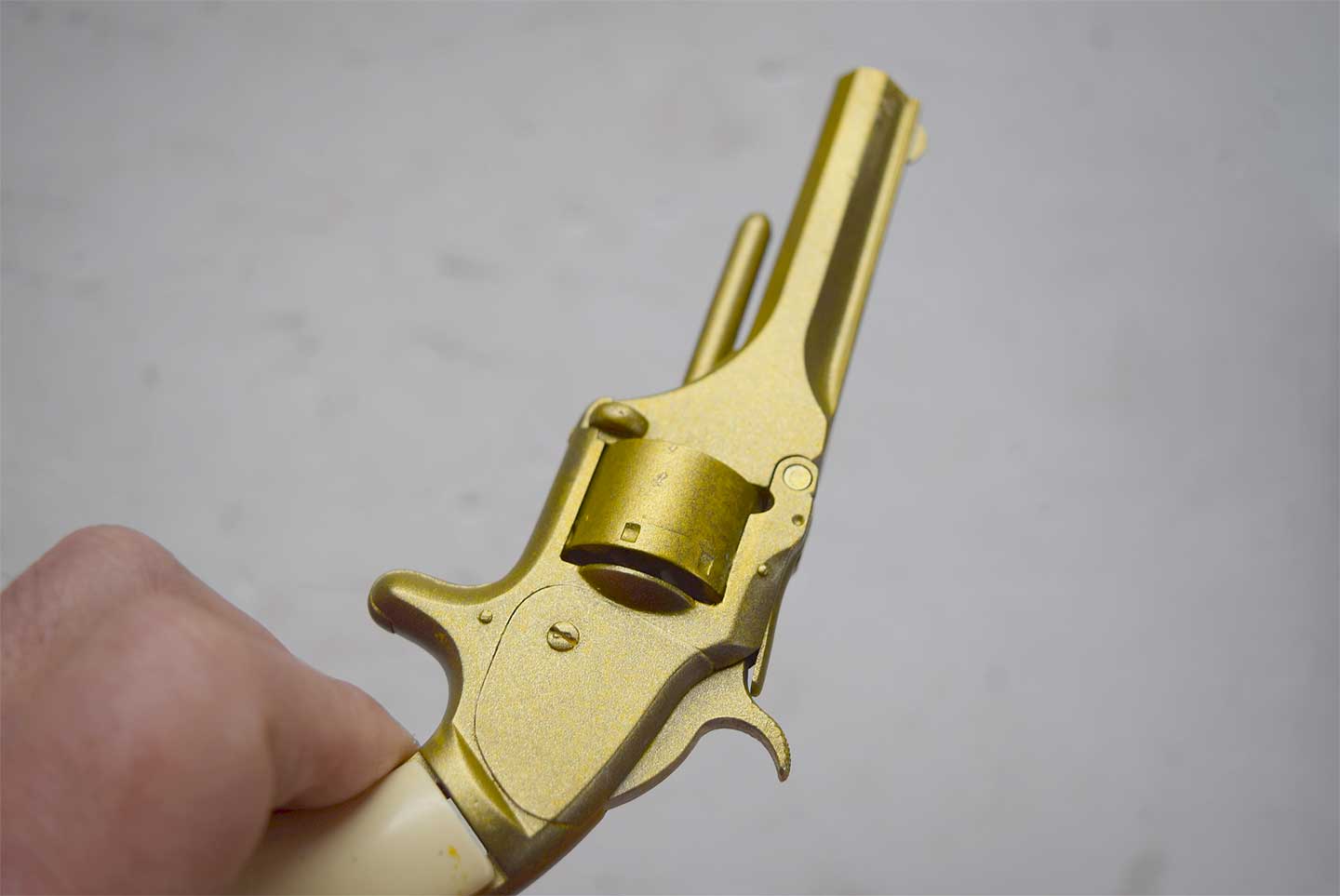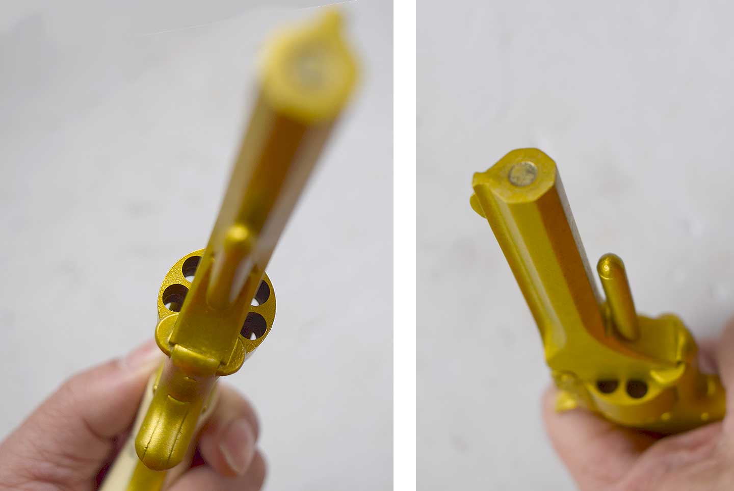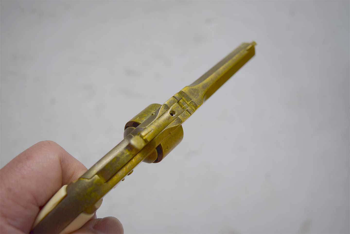 ホワイトメタル製だということですが、バレルやシリンダーに柔らかさは感じられませんが、シリンダストップは