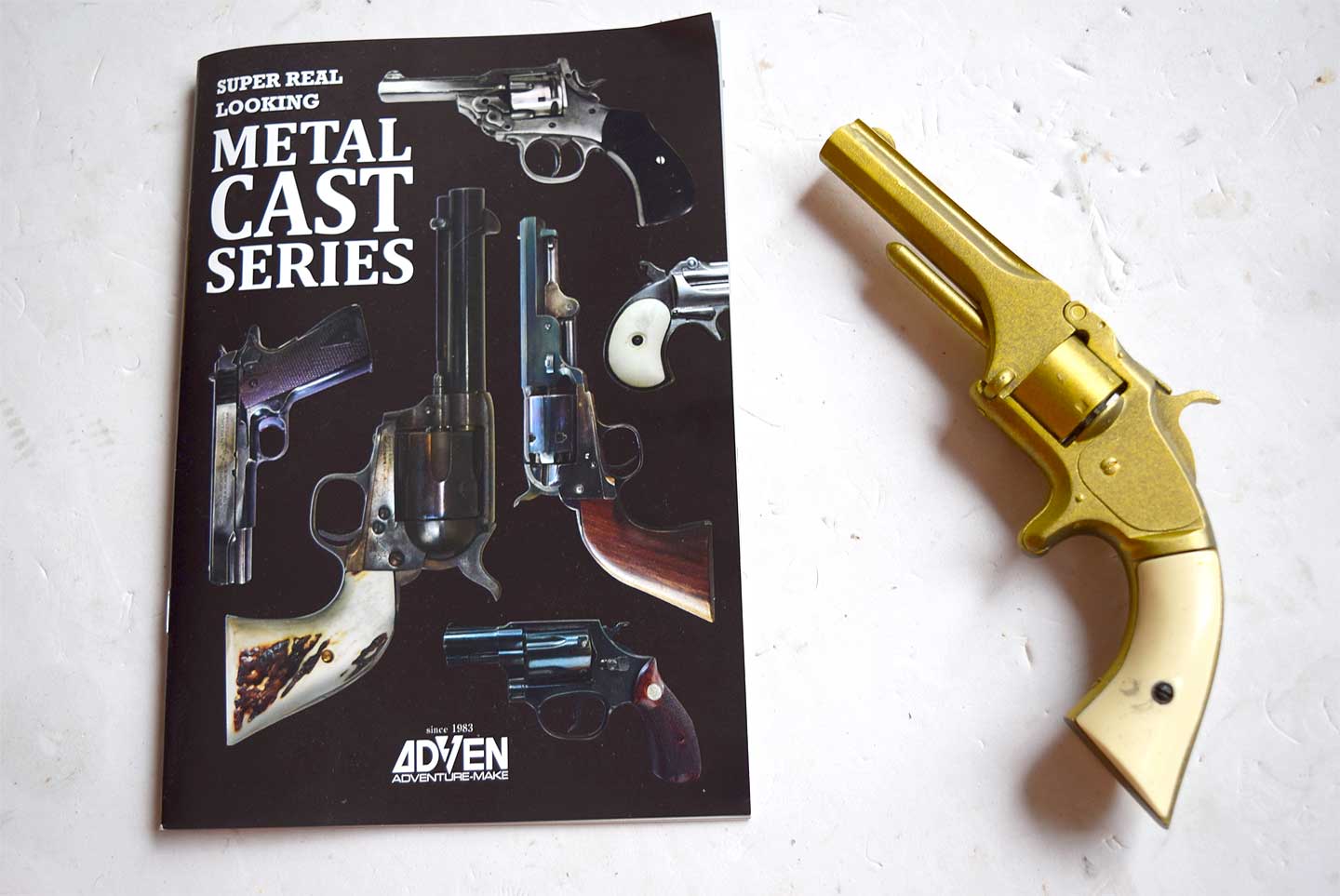 実銃の世界ではモデル1から4年後に口径を.32と大きくして新型No,2 アーミーモデルが発売されました。 そのモデルは、高杉晋作が購入して坂本龍馬に挙げたようで実際に寺田屋で使用して日本でも有名になりました。 のちにマルシンさんがプラスチックでモデルガン化しています。当初は発火式でしたが、ここにあるものは ダミーカート仕様です。最近購入した組み立てキットですが、ブラックスチールというのか、きれいな黒色で パーティングラインなども初めから処理されていて、なかなか良いキットでした。