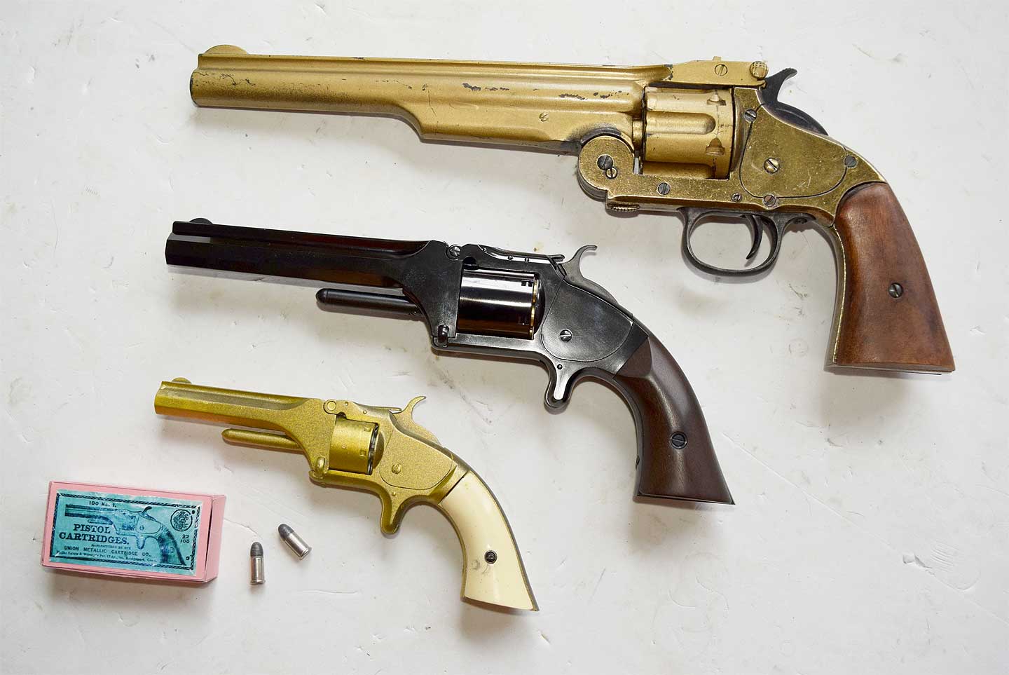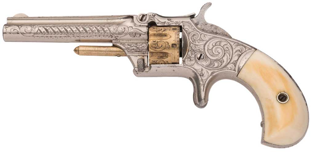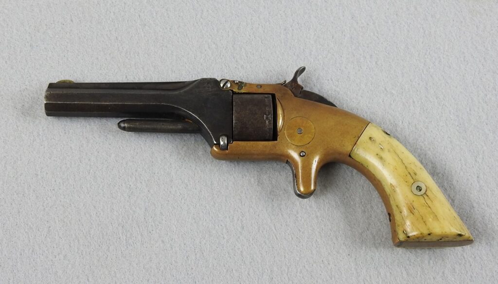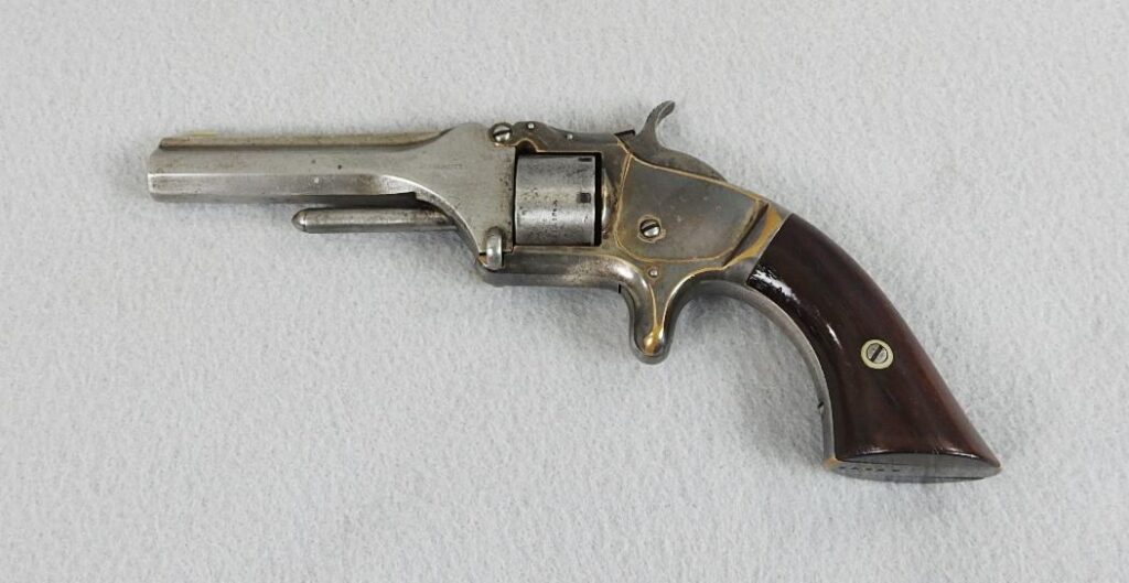 写真がたくさんあります。https://www.gunsinternational.com/guns-for-sale-online/revolvers/smith-wesson-revolvers-22-32/frontier-scarce-antique-smith-wesson-no-1-1-2-32-rf-revolver-wild-west-one-of-only-26-300-1st-issue-spur-trigger-revolvers.cfm?gun_id=102535850