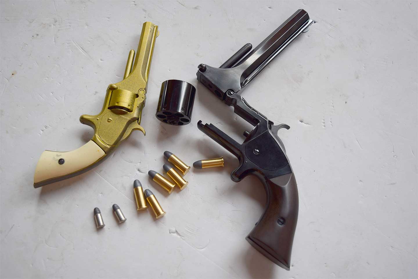 No.1 とNo.2 は全く同じ構造だということが良く分かります。チップアップと、言って上に銃身を跳ね上げます。 撃った後はバレルにあるエジェクターロッドにシリンダーを差し込んで排莢しました。