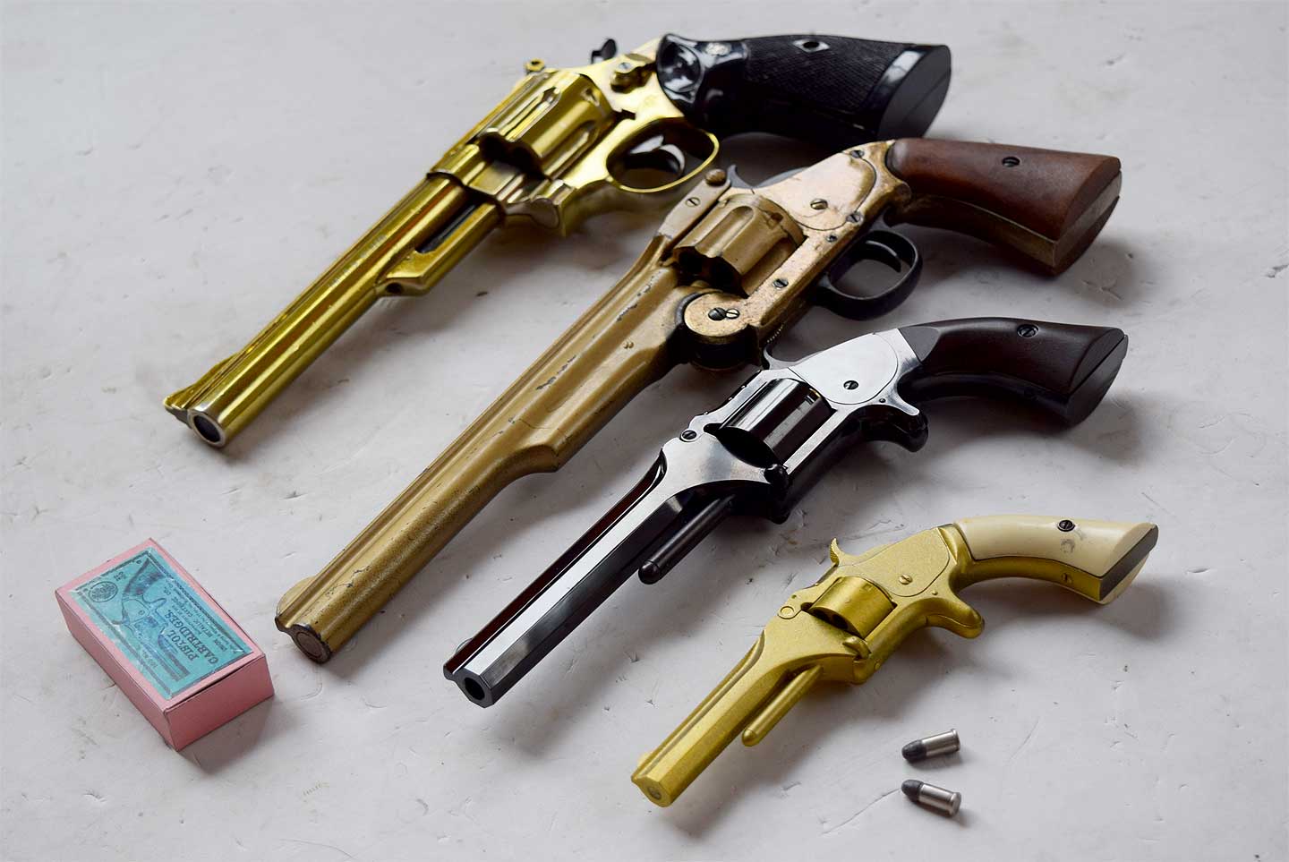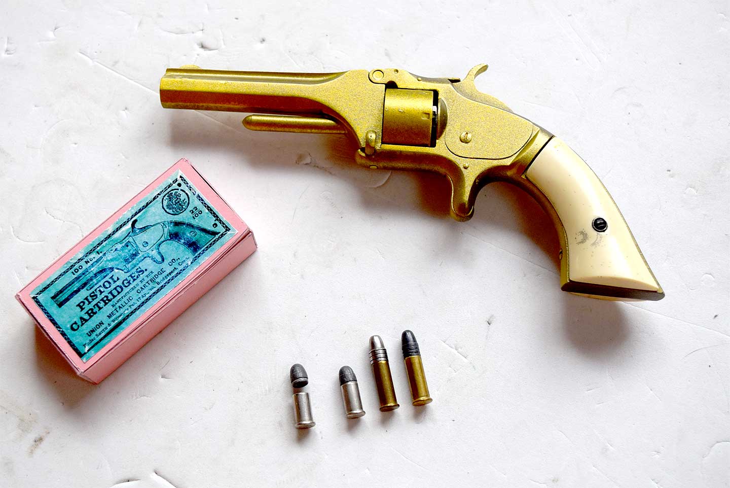 S&W No.1 の文鎮モデルです。写真の安っぽい段ボールに貼った高級写真は下記から落としました。むかしは高級ガンだったのでしょう。素晴らしい箱に入っています。データは、そのうち消されるでしょうから下記写真は保存をお勧めします。