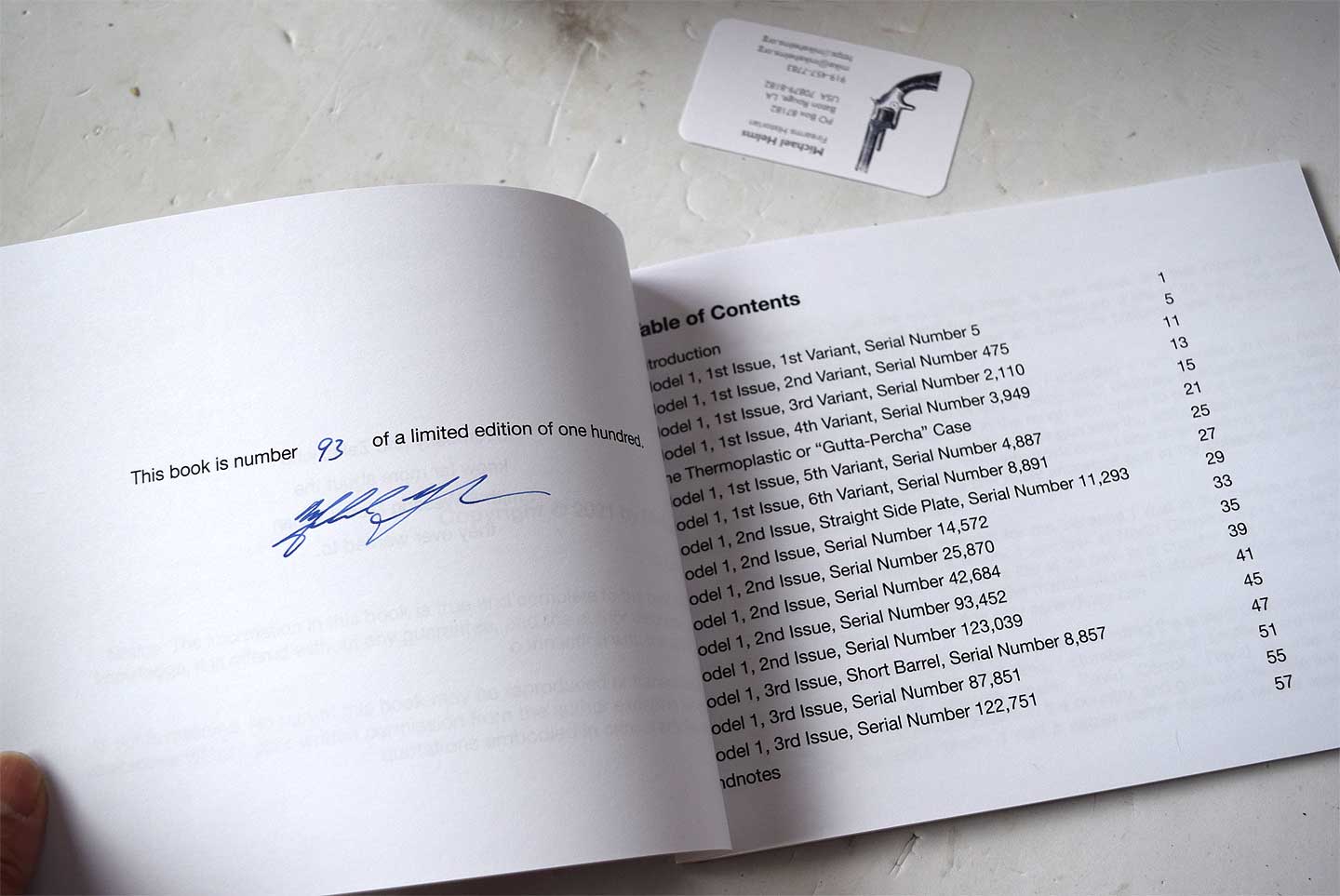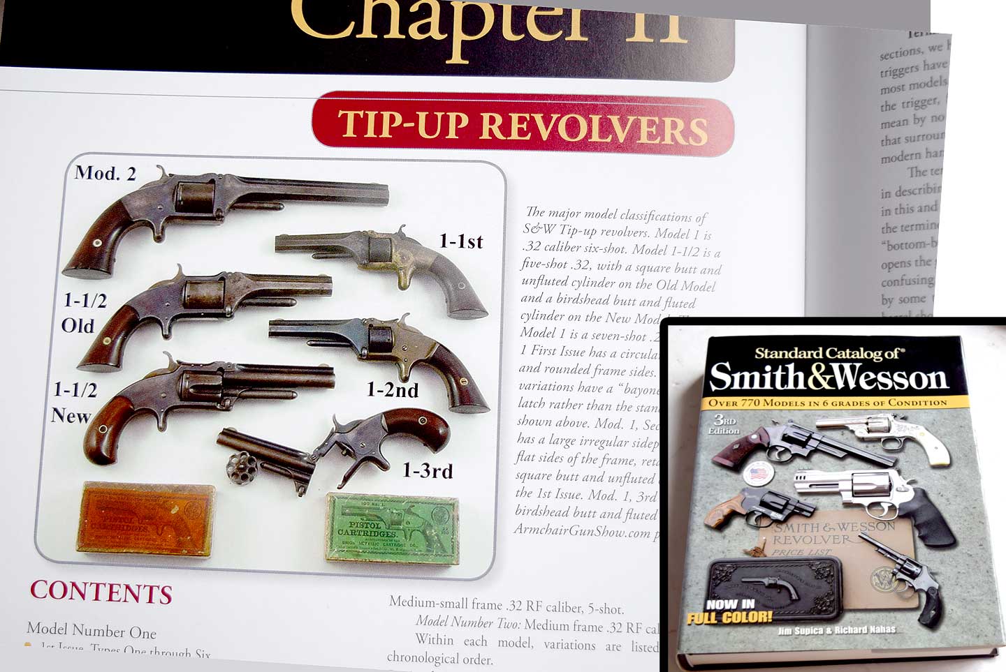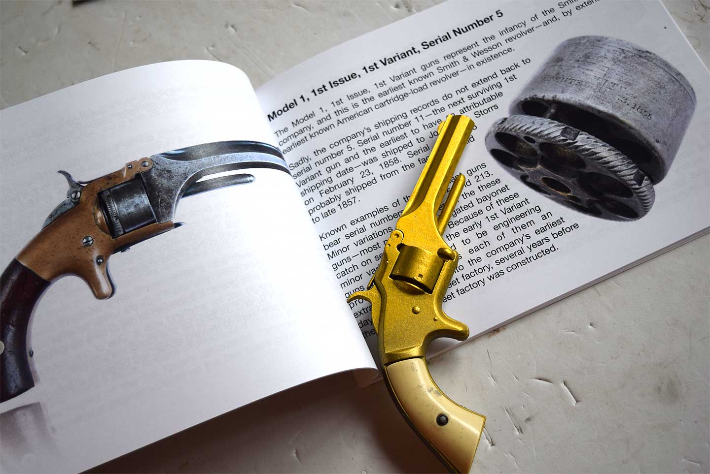 No.1 モデルに尋常ではないこだわりを持っている方が書いた書籍です。自費出版のようでページの紙の品質は イマイチですが、珍しい写真の数々に圧倒されます。一番右の写真の目次のようにファースト・イシューだけで 6個もバリエーション違いを挙げているほどの情報量です。すごい研究家です。真ん中の写真のように 最初の製品はラチェット部分が別パーツだったんですね、初めて見ました。