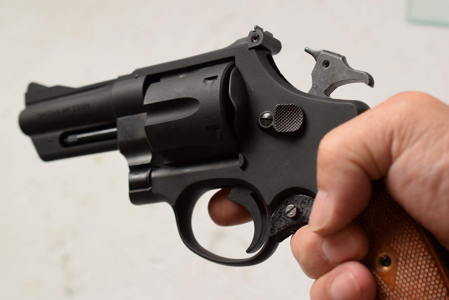 メカは既に完成されています。素晴らしくS&W の精密メカが再現されています。右写真はネットから取ってきました実銃の Kフレームですが、ハンマーブロックなどが旧式です。ビクトリーモデルでしょうか?