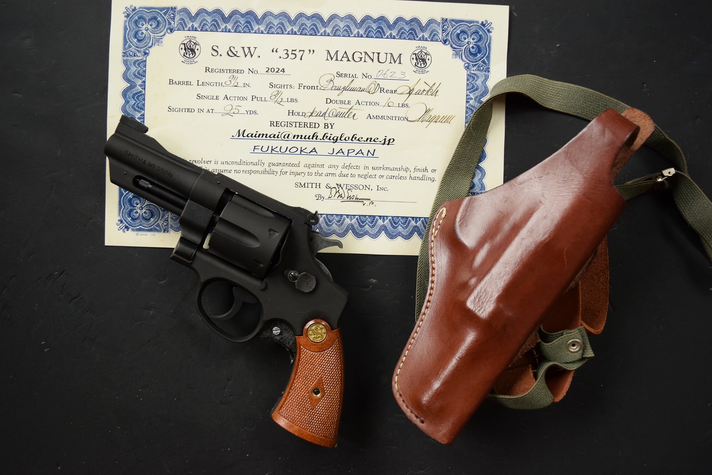 レジスタードマグナムは第2次大戦にかかり生産されなくなり、S&W 社のすべてのパワーは戦争用に振り向けられました。 ふたたび357モデルが出現するのは、1950年代に入ってからで、そのころは特別あつらえ品ではなく、用意された銃身長のみで 販売されました。