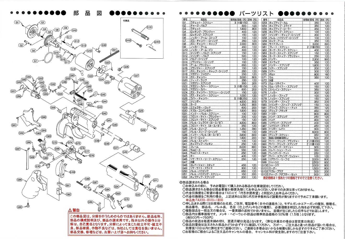 タナカガスガンの分解図です。