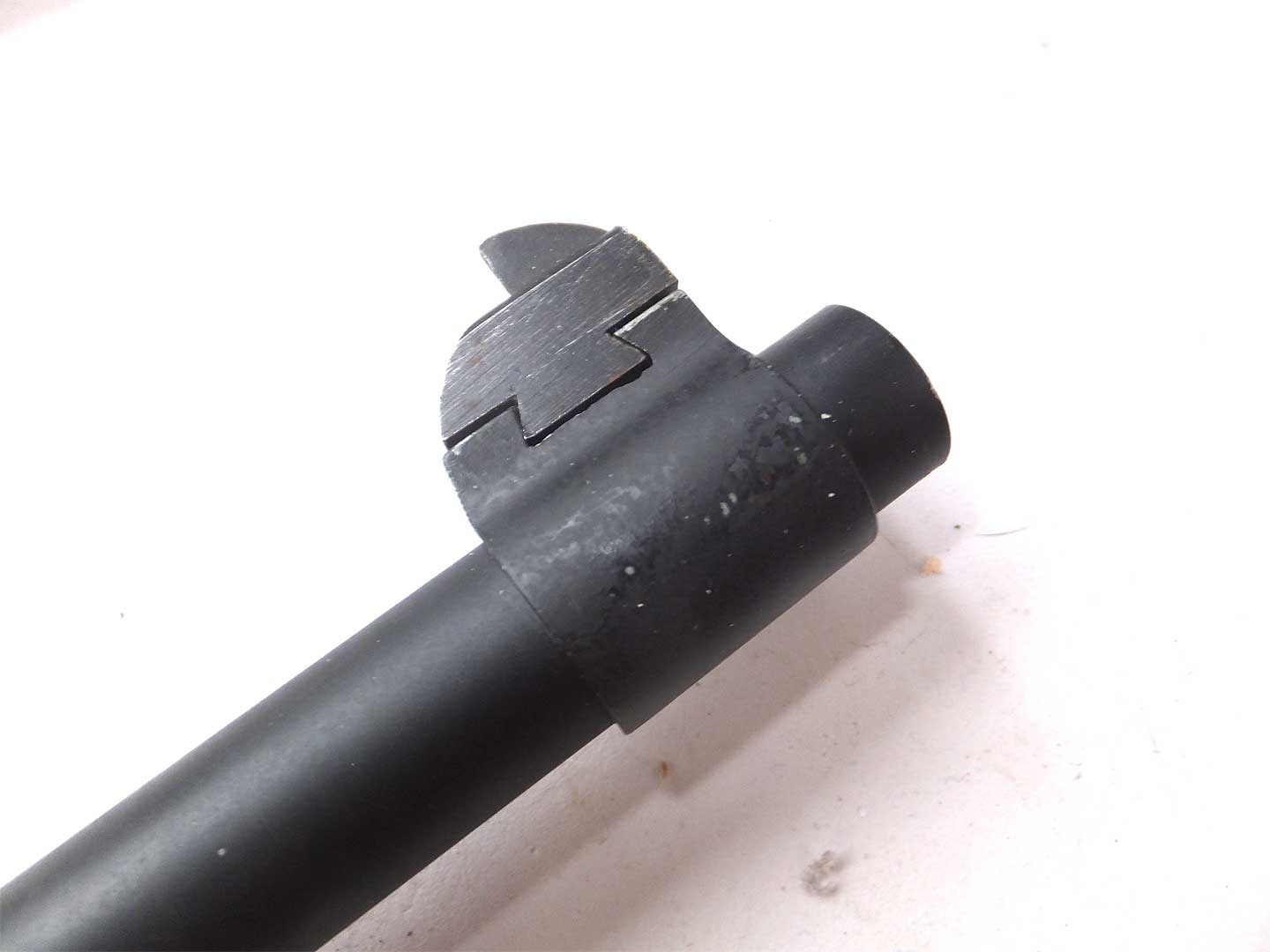 上のカスタムのボルトハンドル付近のレシーバには、元のモデルのリアサイトが乗っていた凸が残っています。