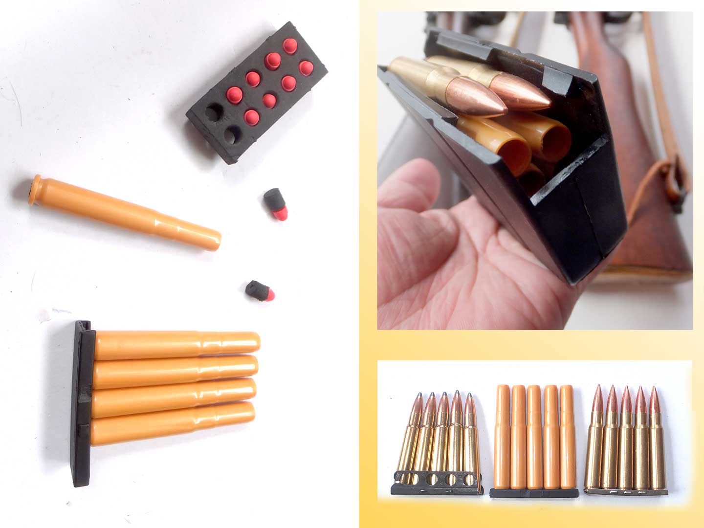 カートは、写真左にある実物303カートよりもでっかくって、右の8mmモーゼルくらいあります。 マガジンには7発入りそうです。実物は10発、アマゾンの製品ページには6発入りますと書かれています。