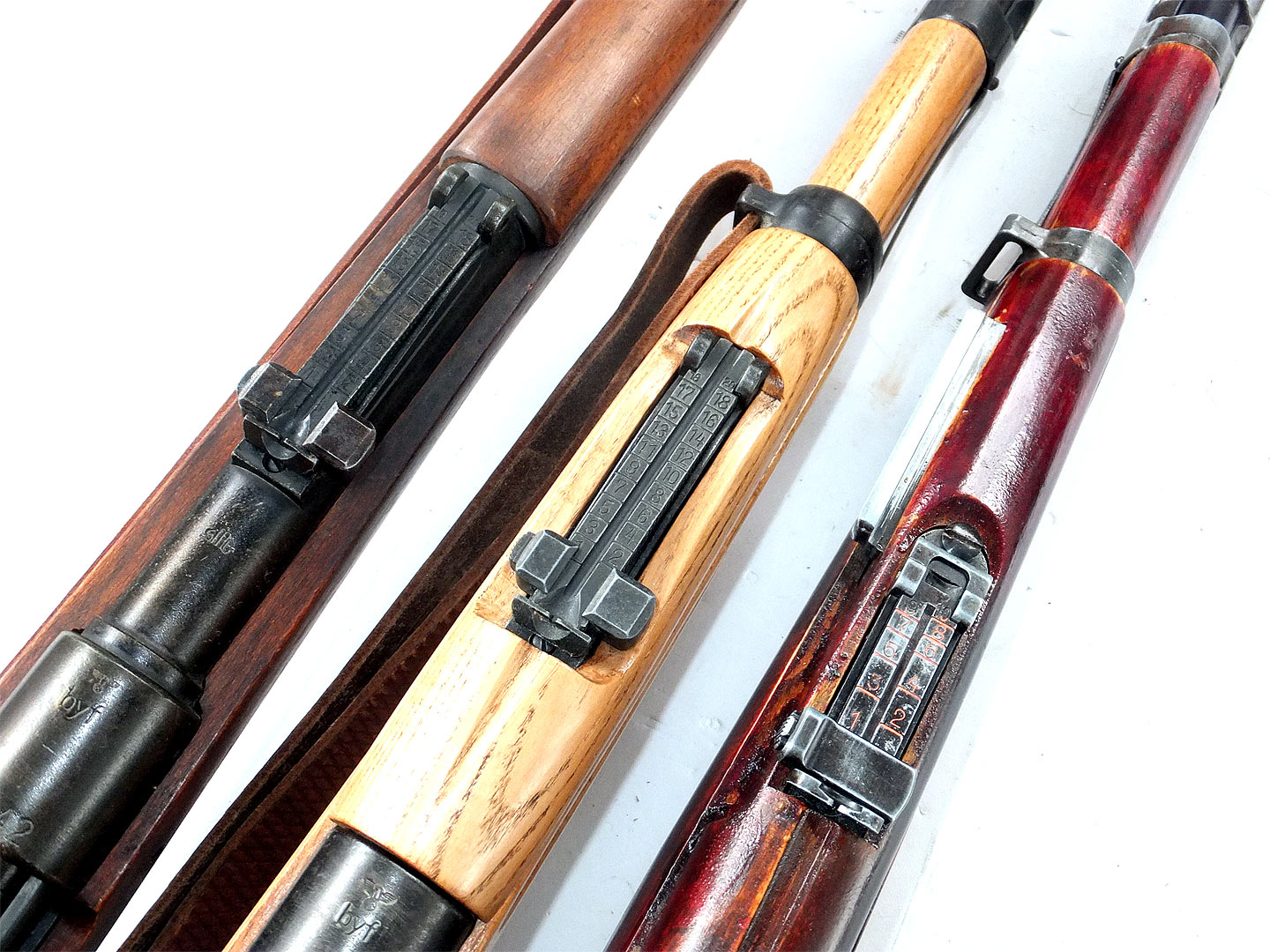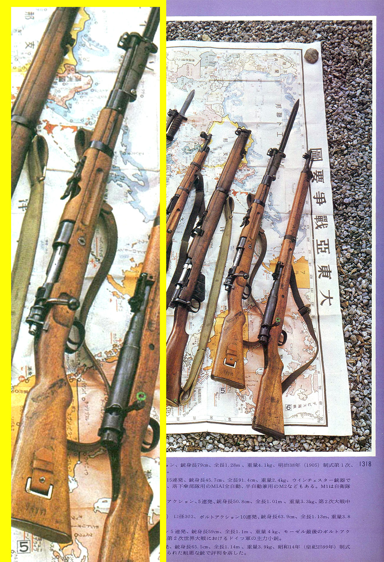 上からCAW のGew 98、PPS ・中正式、CMC・Kar98k、イラニアンカスタム、タナカGew33/40 です。