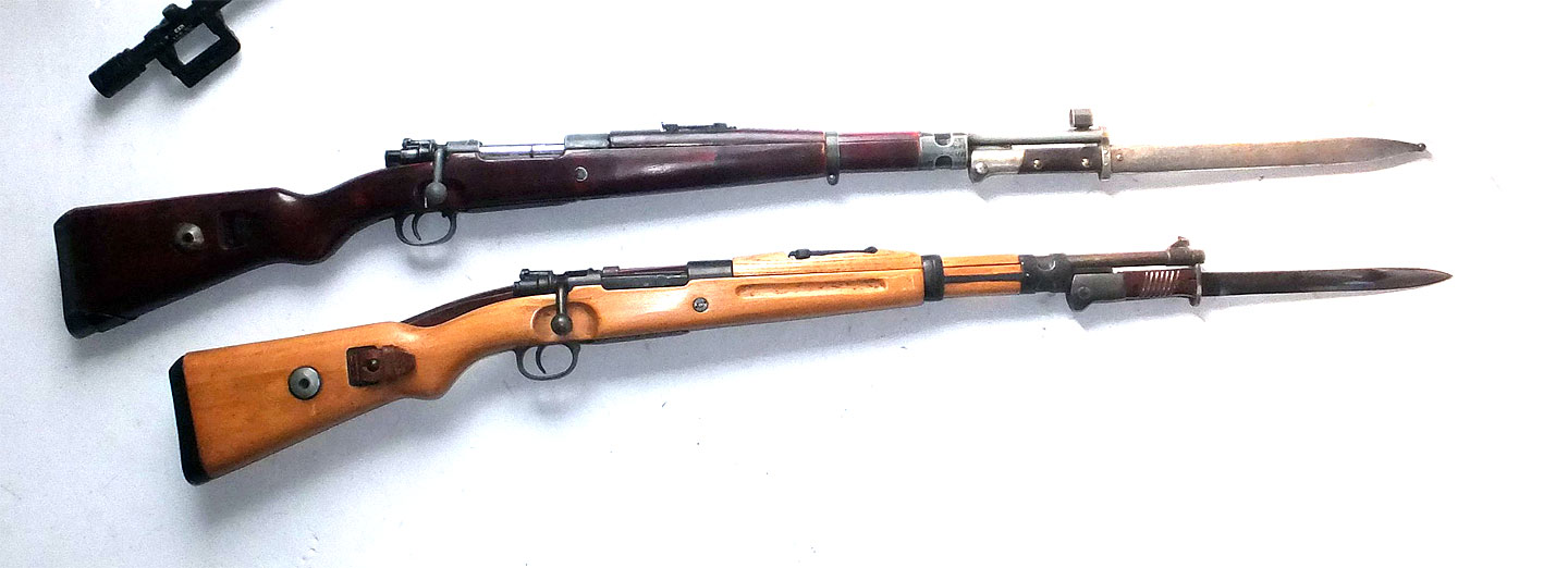 Gew というのは、小銃を表すドイツ語で、スラッシュ40というのは、採用年度が1940年だからです。 ドイツ軍が海外の製品を正式化したときにこういう呼び名をつけたのではなかったかと思いますが、 ややうろ覚えです。もともと、チェコで作られていたVz 33 というKar98 を10cmほど短くした カービン銃が元です。それにストック強化プレートを付けて山岳兵用に採用したものです。