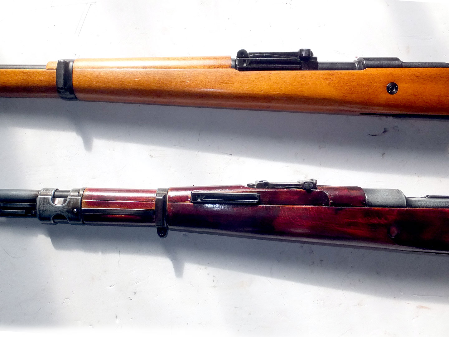チェコで生産されたモーゼルライフルは、世界各地へと輸出されました。南米、中国、イランにも何十万というライフルが 輸出されました。そのうちの写真下の銃身の短いカービンが、ペルシアン M49 カービンと言われています。イランでの ライセンス品かもです。バレルは450mmのようです。