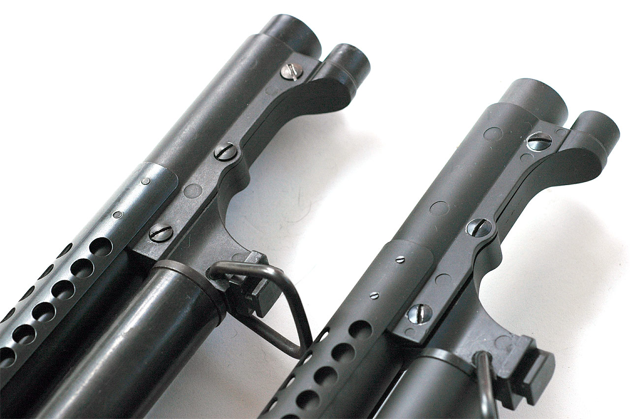 写真右のバージョン2は、バレルジャケットの右側が、ネジで止められるように変更されています。このほうが組み立てやすいことでしょう。