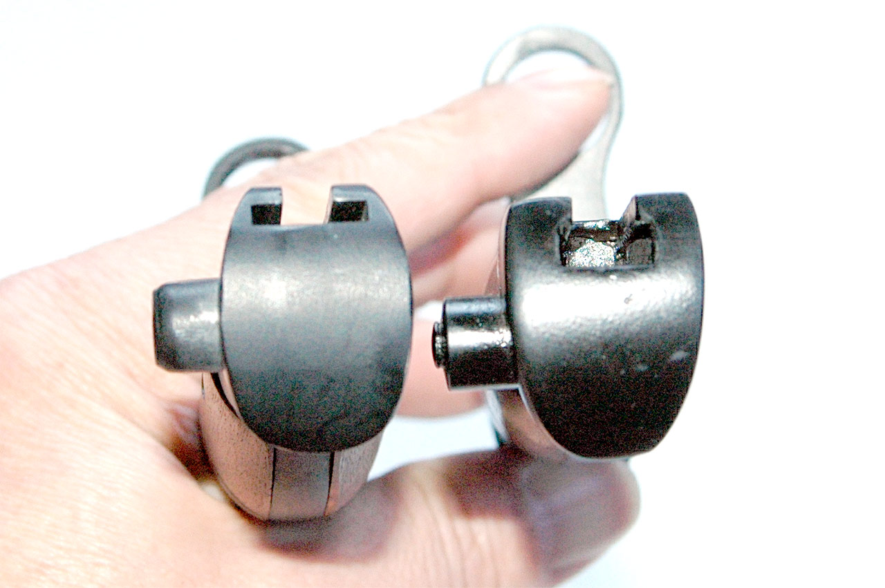 ここが強化されたのは、特筆に値します。写真右のバージョン1では1cmくらい折れているのです。ストックを止めるボルトは、
