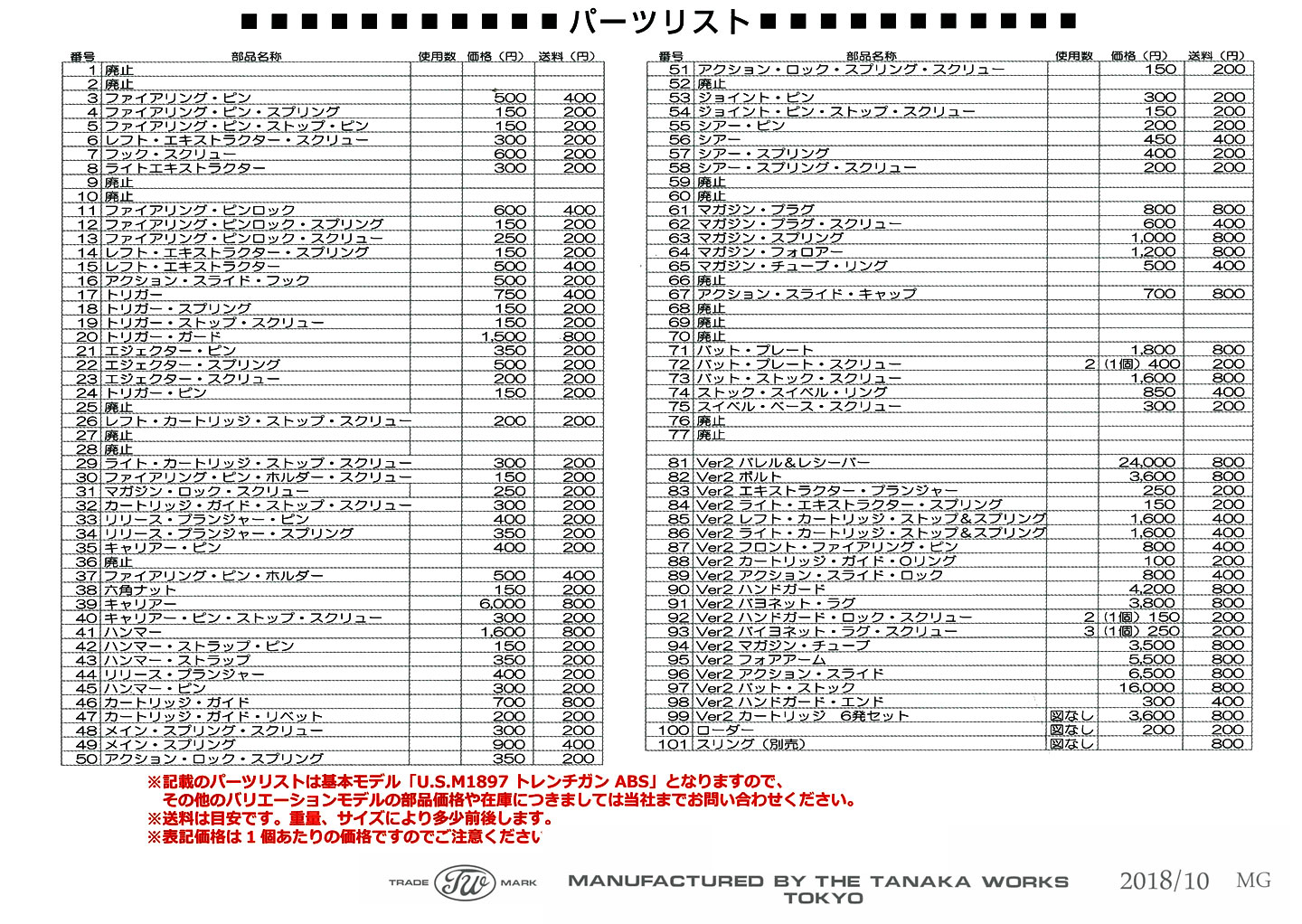 新製品のパーツは、個別販売しないものだそうですが、ダメもとでMGC 福岡店にパーツを注文してみました。数週間でニューボルトが