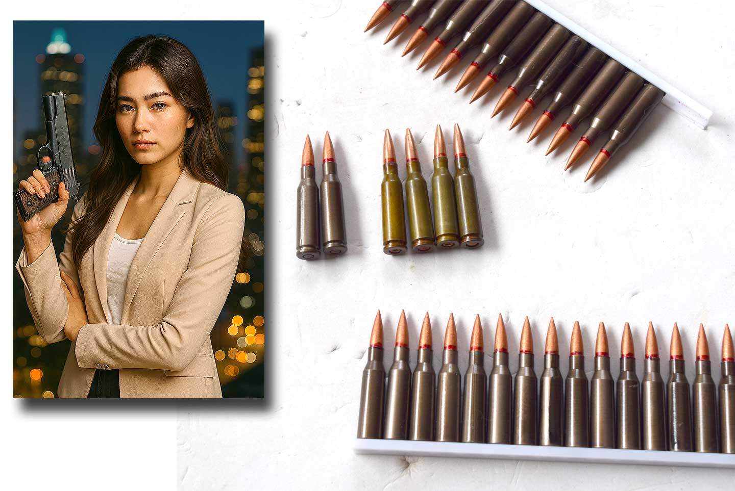 この写真をご覧ください。ロシア系で使用される5.45mm弾のダミーカートと3D作品です。