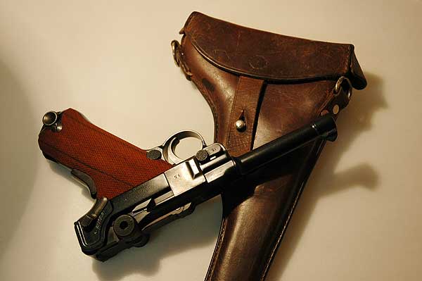 白熱灯のみで撮影。暖かい感じになりホルスターもより良く見える。 背景の白ボードは茶色に見える。