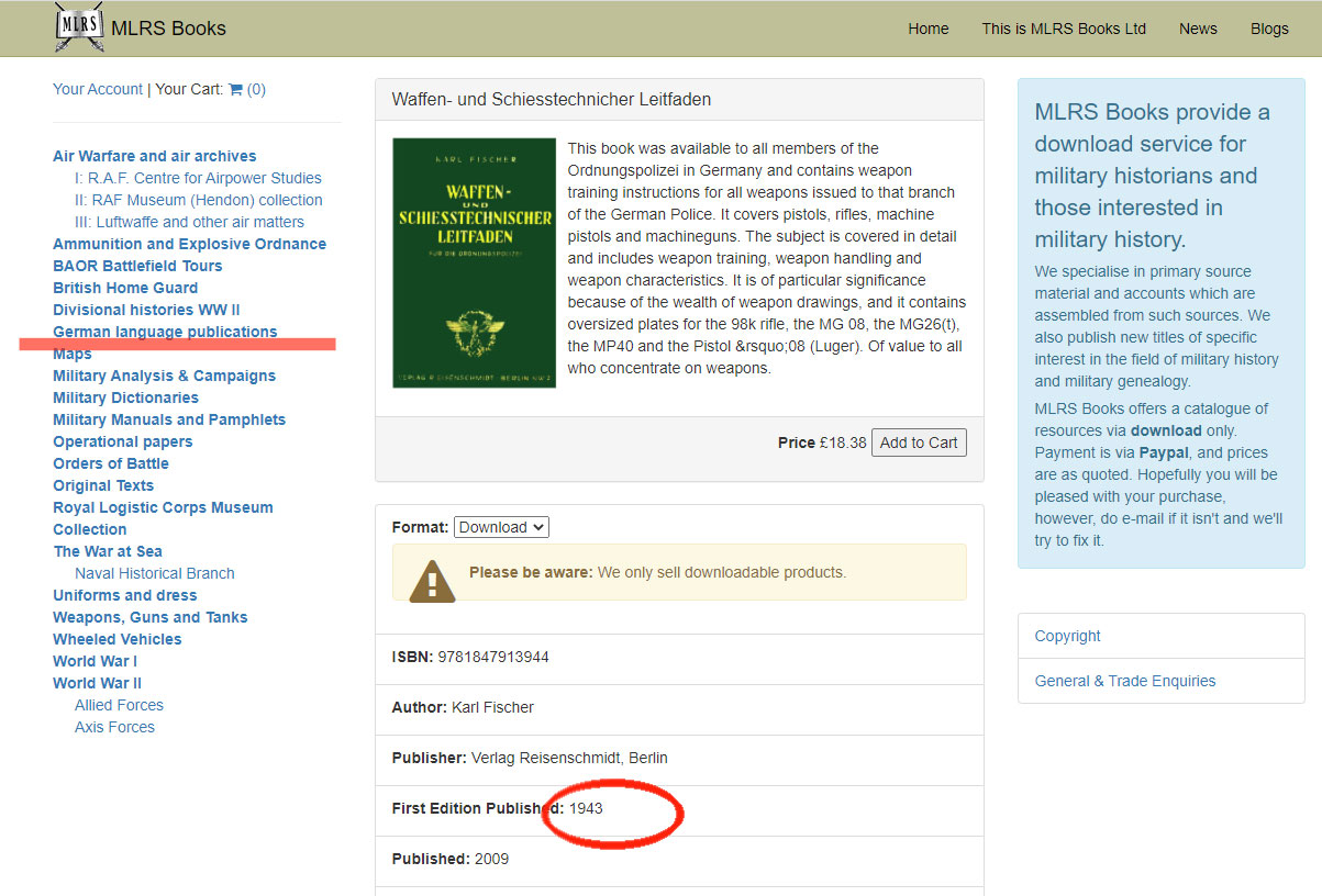 これはもう、自分で入手してスキャンするしかないとの結論に達し、掲載書籍を探し当てました。調べるとシカゴレジメンタルさんで売っている事が分かったのですが、4万から5万して結構なお値段です。 アメリカなどでもう少し安いところはないのか探してみました。すると下記のドイツミリタリー屋さんで 見つけました。