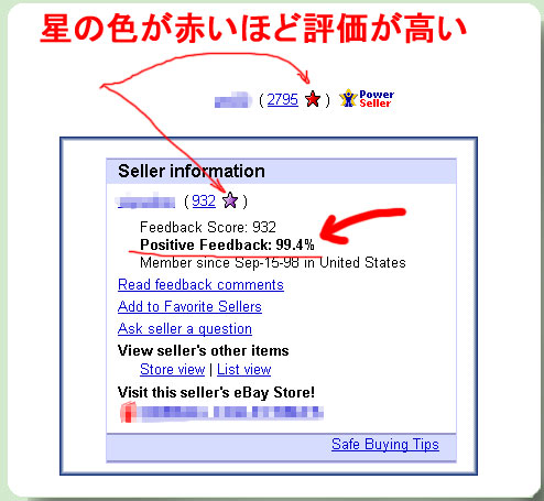 書いているし持ち点数で出品者は色分けされている。日本のヤフーオークションが出品者に対して