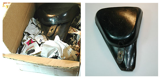 まさに、黒い南部14年式ホルスター。小切手が付いてから1週間ほどで日本へ着いた事になるので
