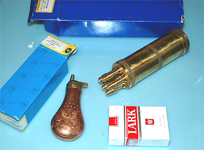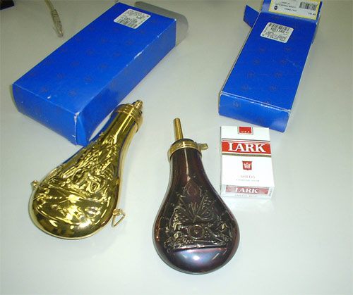 前装銃の黒色火薬入れであるフラスコはアクセサリーに持って来いだが