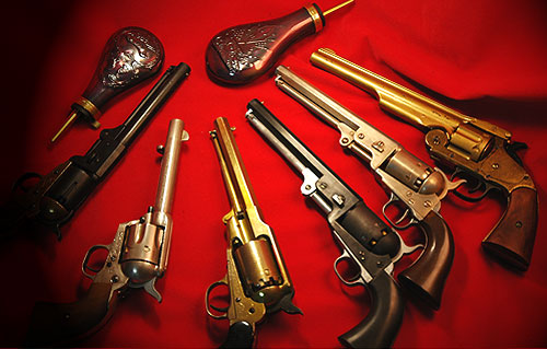 レミントンもランヤードが少し窮屈だが入る。SAAは当然すっぽりと入る。 右上のニップルケースはハートフォードでクラシックタイプを購入850円。