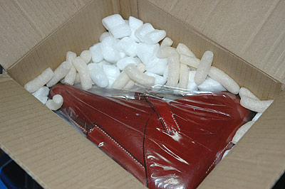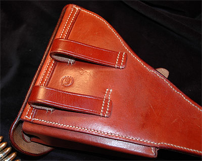 即行注文したが品切れだというメールがすぐに来たので、欲しい物を列記して どれが在庫あるのかを聞いて見た。すぐに返事が来て対応は大満足だ。 「在庫はoo月までありません」と次期入荷予定まで書いてくれて親切だ。 自分の書く英文メールは、たったの2行、自動翻訳で書いた。 「問い合わせ」「在庫あるか?」・・・の2行。 8インチ用、6インチ用、モーゼルのストック用などみんな品切れだったので 普通の4インチ用を買う事にした。 ついでなので「ルガー8in用クリーニングロッド」と「モーゼル用真鍮製クリップ4個入り」を 注文した。なお、このホルスターの場合「黒」「茶」「あずき色」があるのでこちらで指定する。 私が購入した物は、russet「あずき色」(黄褐色)である。 最初のメールから16日、品切れメールからすると14日で無事に届いた。