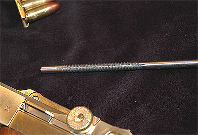 アーティラリー用のクリーニングロッドの先端。一本だけミゾが彫ってある。