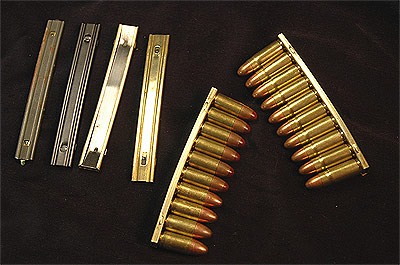 モーゼルの真鍮製クリップ。右から4つ、その次はモデルガン用の物(なに用か判らない)。