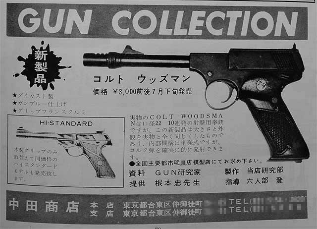 MGCブローニングが発売間近な頃 1965年 3月号 Gun 誌に中田初のモデルガン発売予定の広告が載ります。