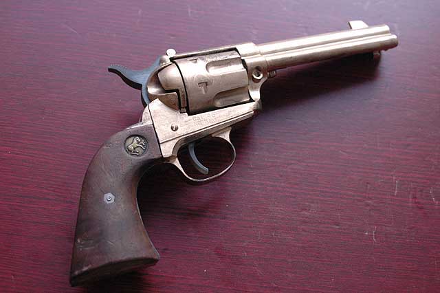 それは、コルト・スペシャルと呼ばれヒューブレー(HUBLEY)のキャップガンの中身をすべて作り直した物で、バレルを付けマガジンを製作し